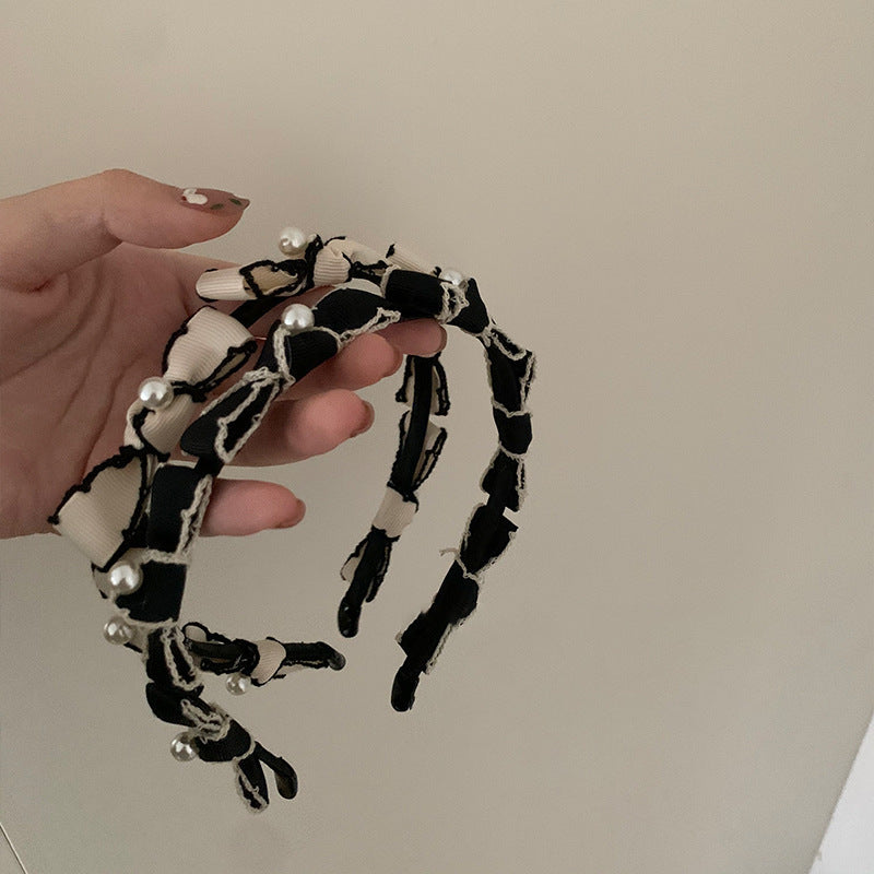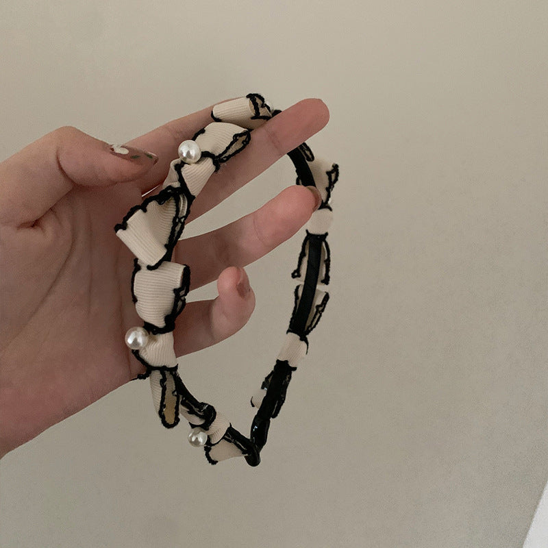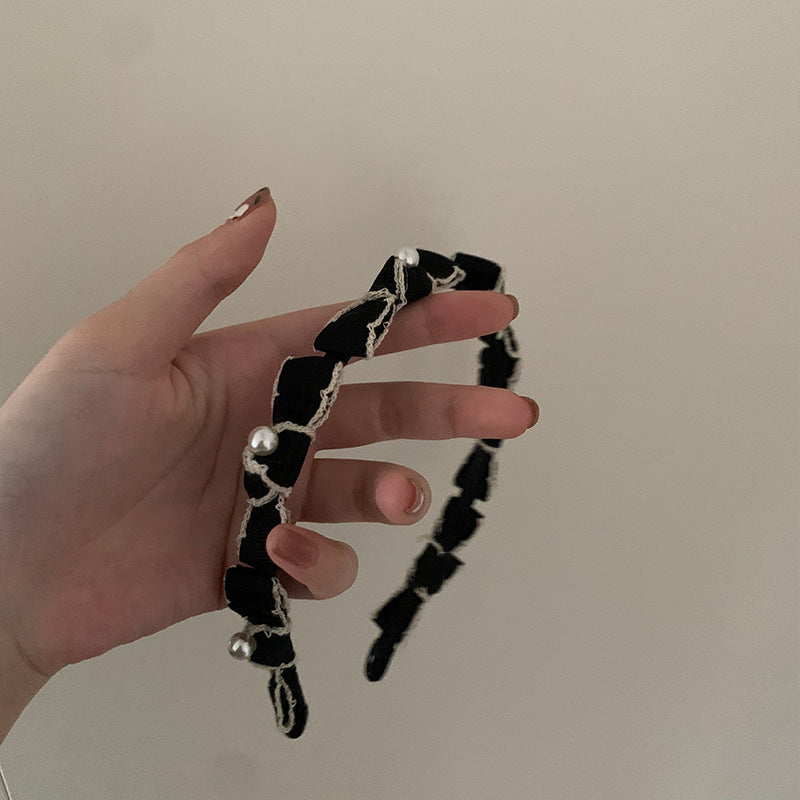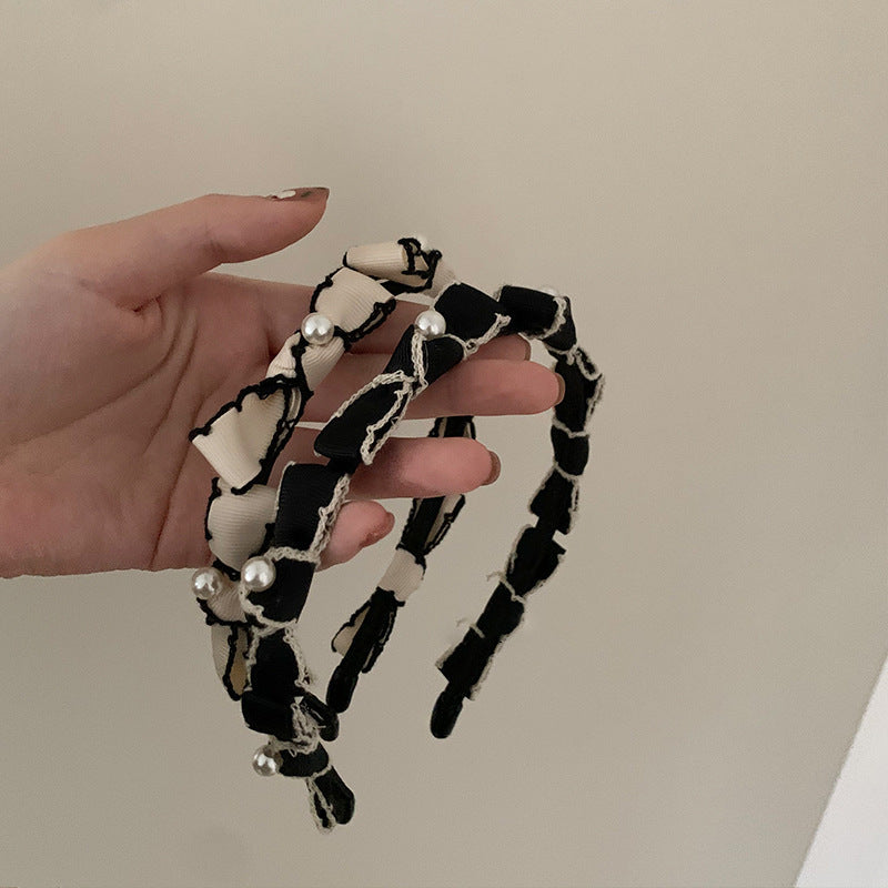 HX-134香香風蝴蝶結珍珠白色髮箍女夏天圓臉仙氣髮飾髮卡夏季寬HX20210825