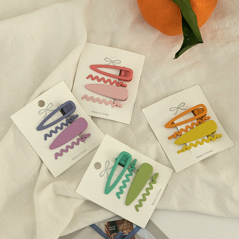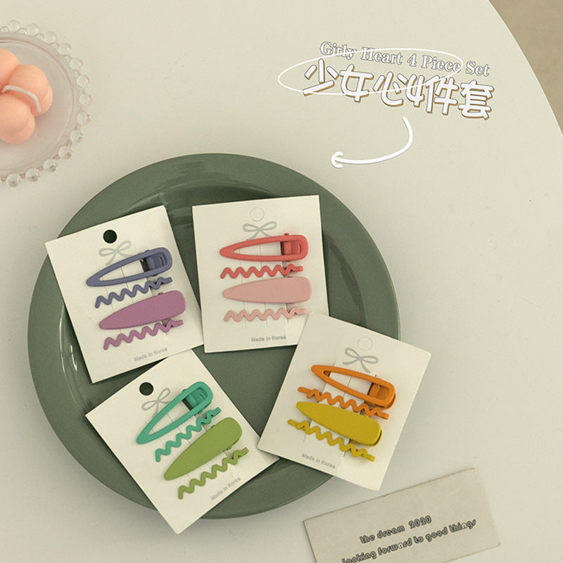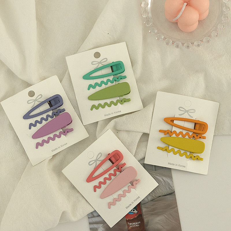 HX-167糖果色4個裝可愛彩色波浪髮夾少女心泫雅風一字夾發卡軟妹髮飾HX20211014