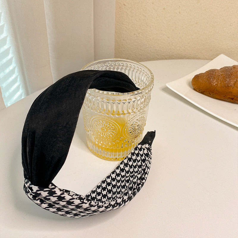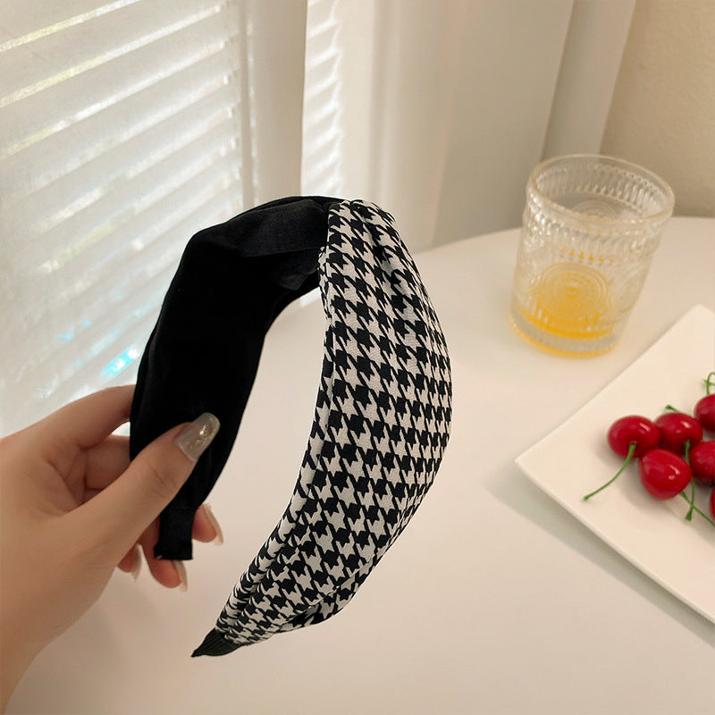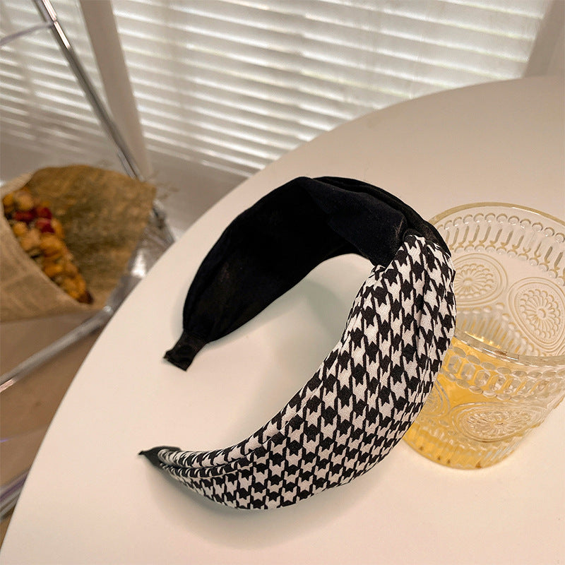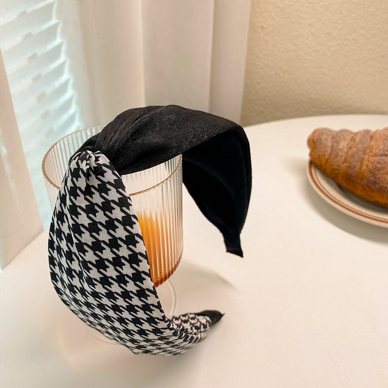 HX-294千鳥格髮箍蝴蝶結法式復古黑白格子頭箍網紅ins寬邊壓髮氣質髮卡HX20210903