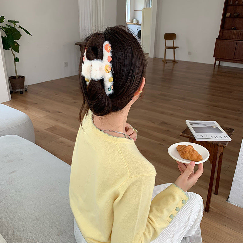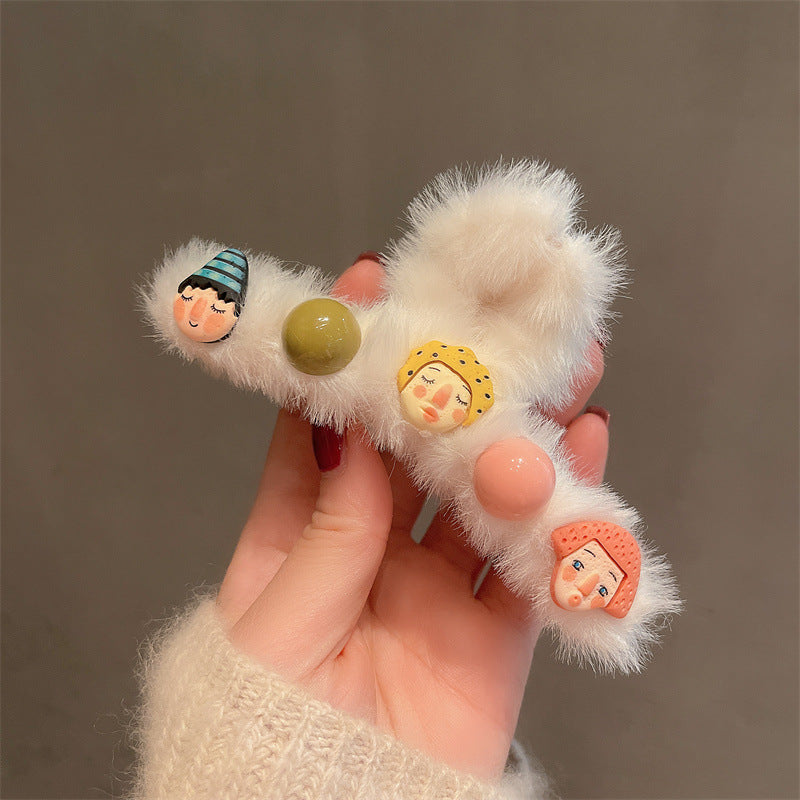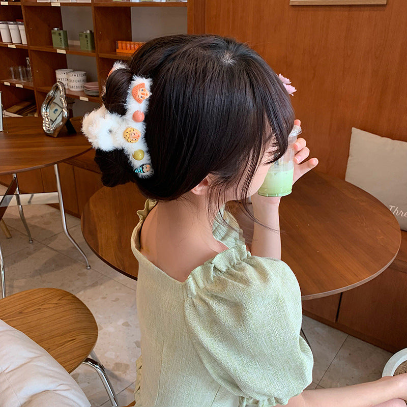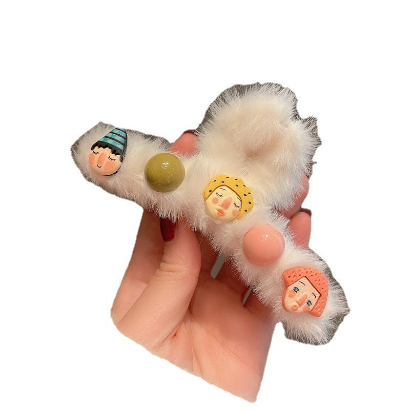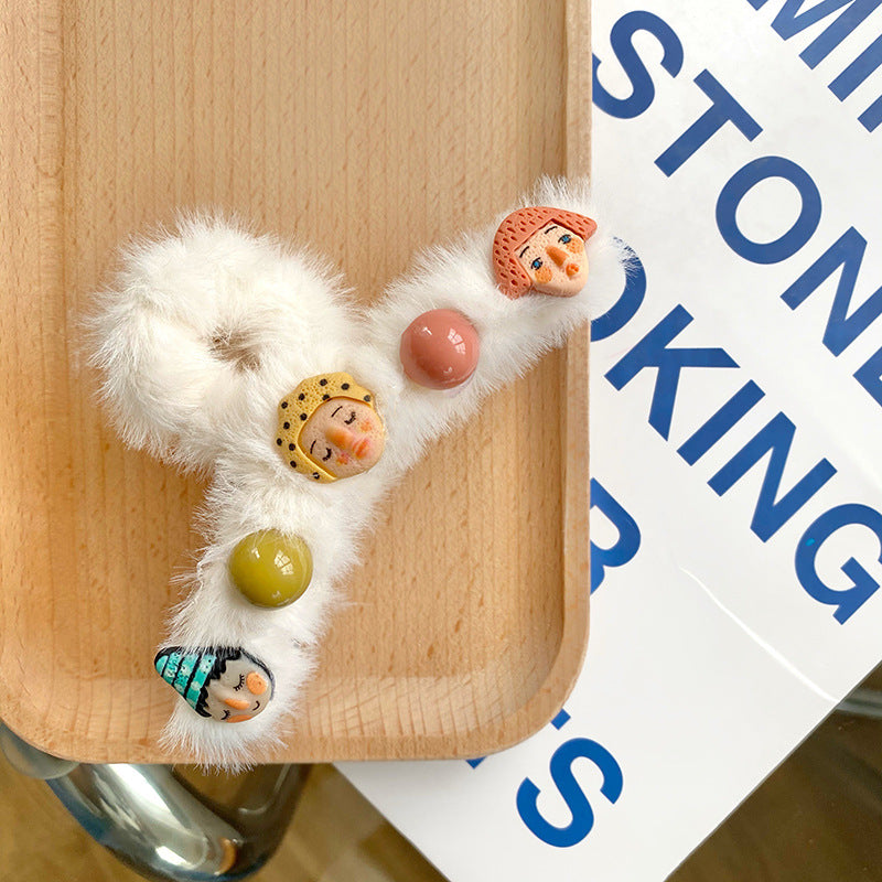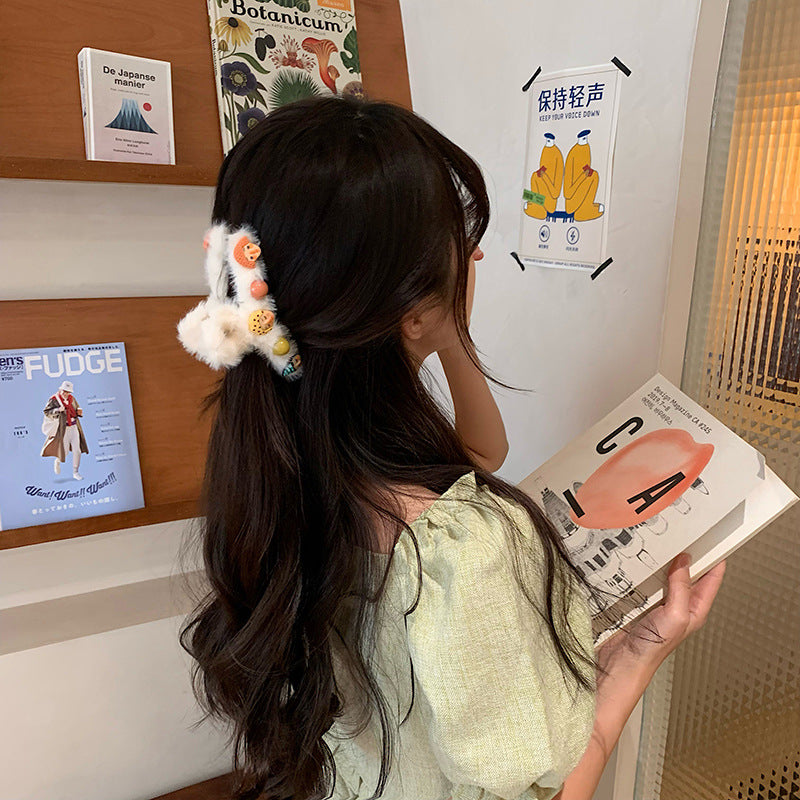 HX-303韓國東大門新款卡通毛絨娃娃臉大號抓夾後腦勺盤發夾鯊魚夾發卡子HX20210906