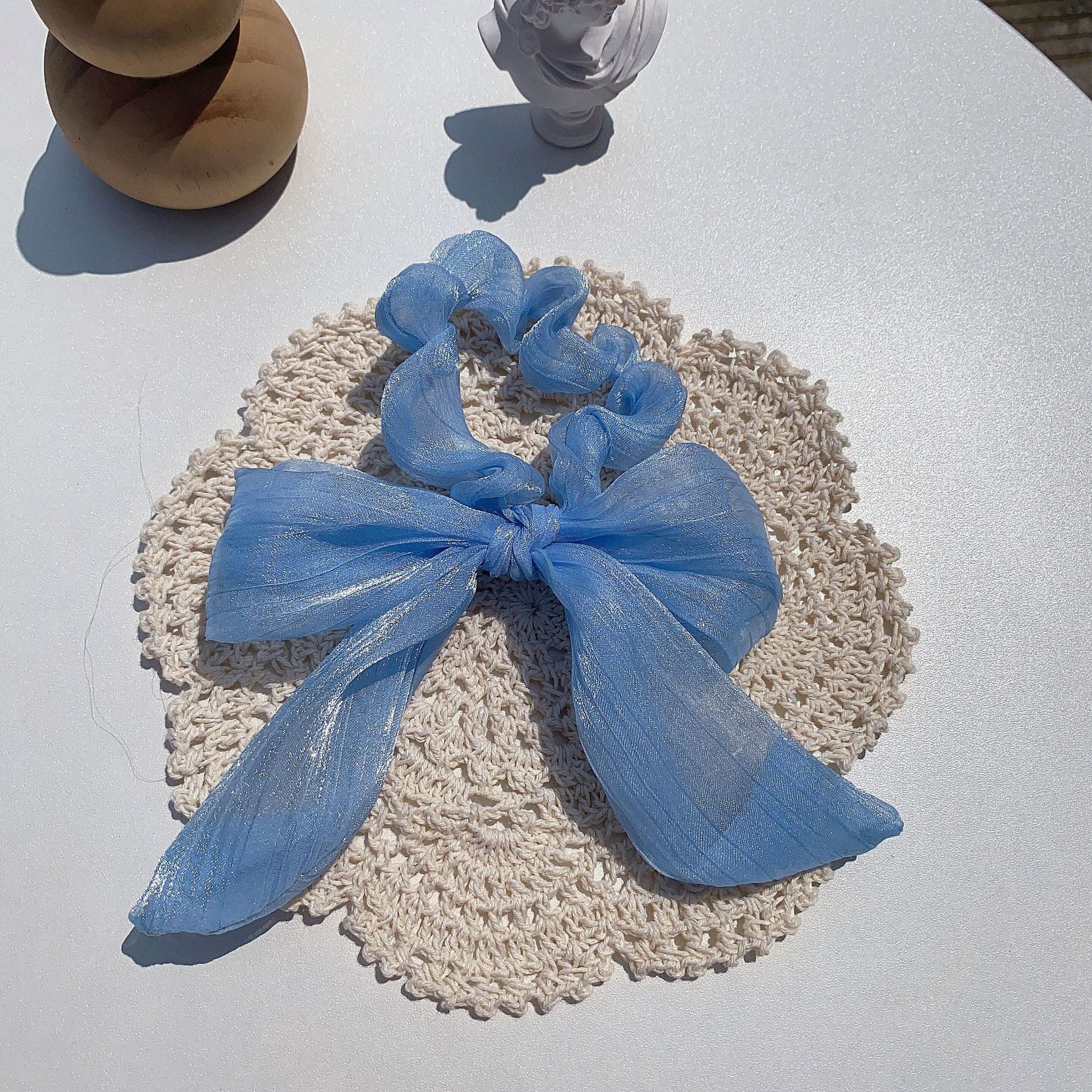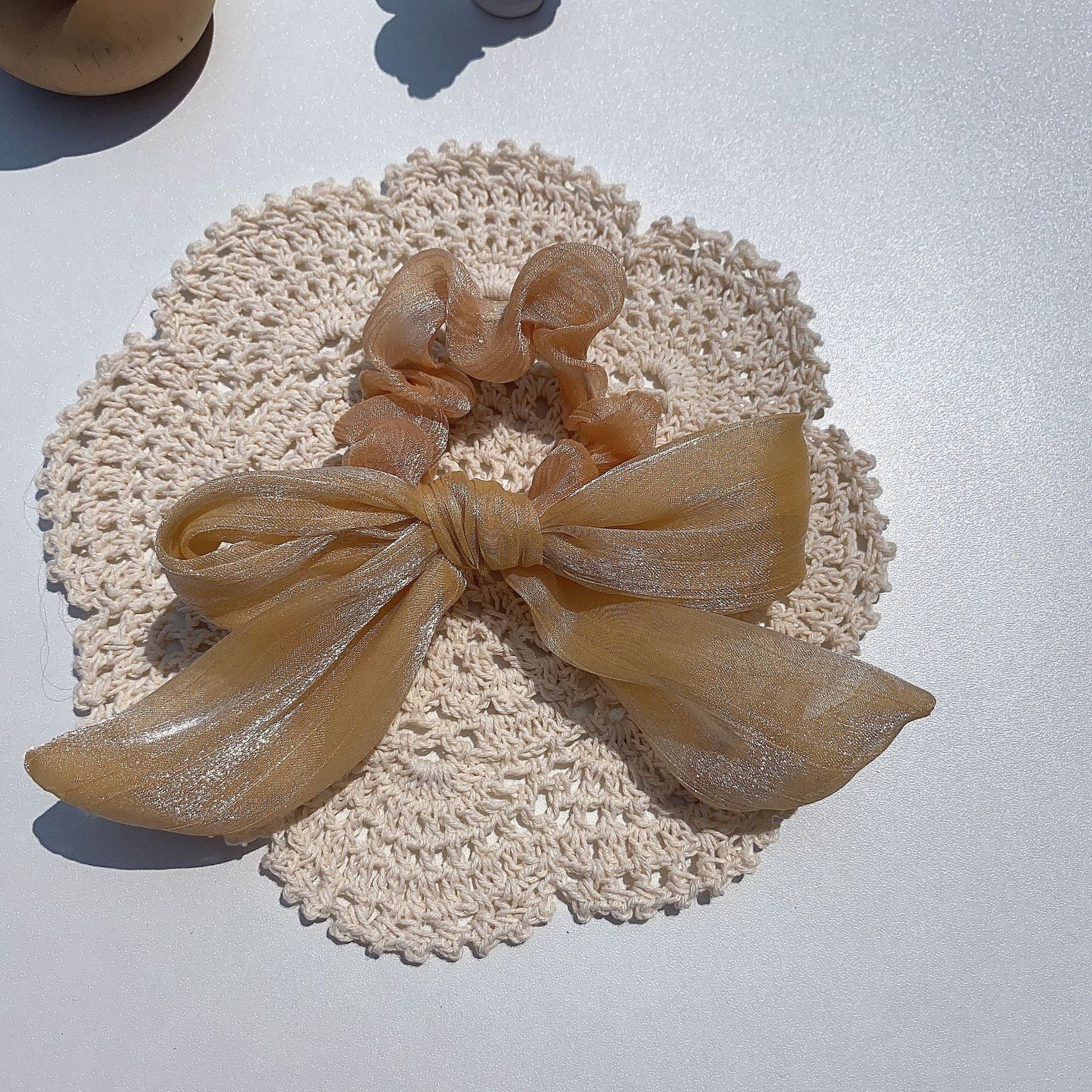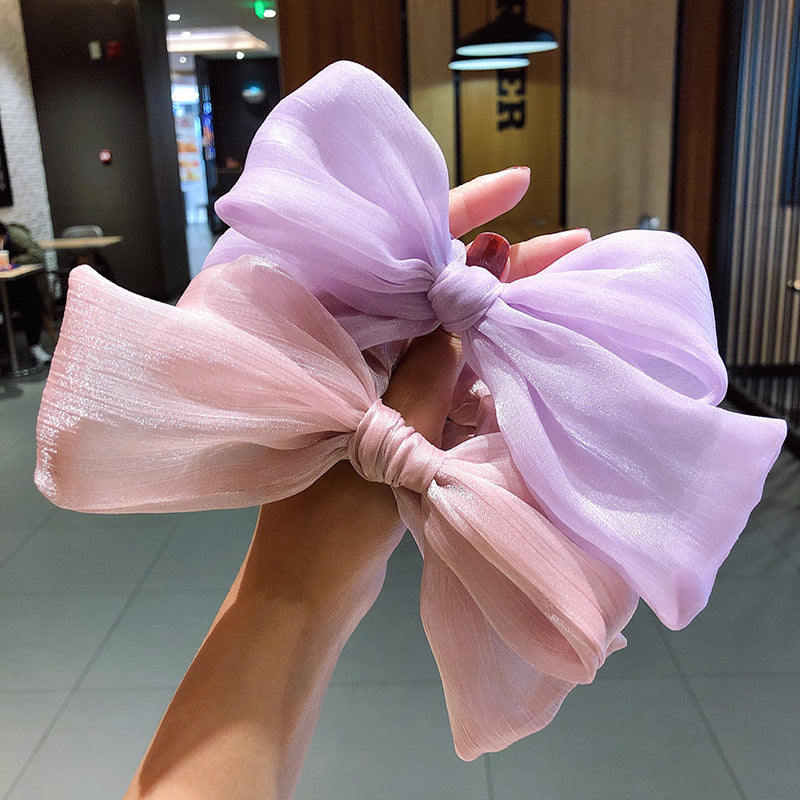 HX-327韓版珠光大號蝴蝶結大腸髮圈歐根紗頭繩超仙森系少女心髮繩髮飾品ycintestine