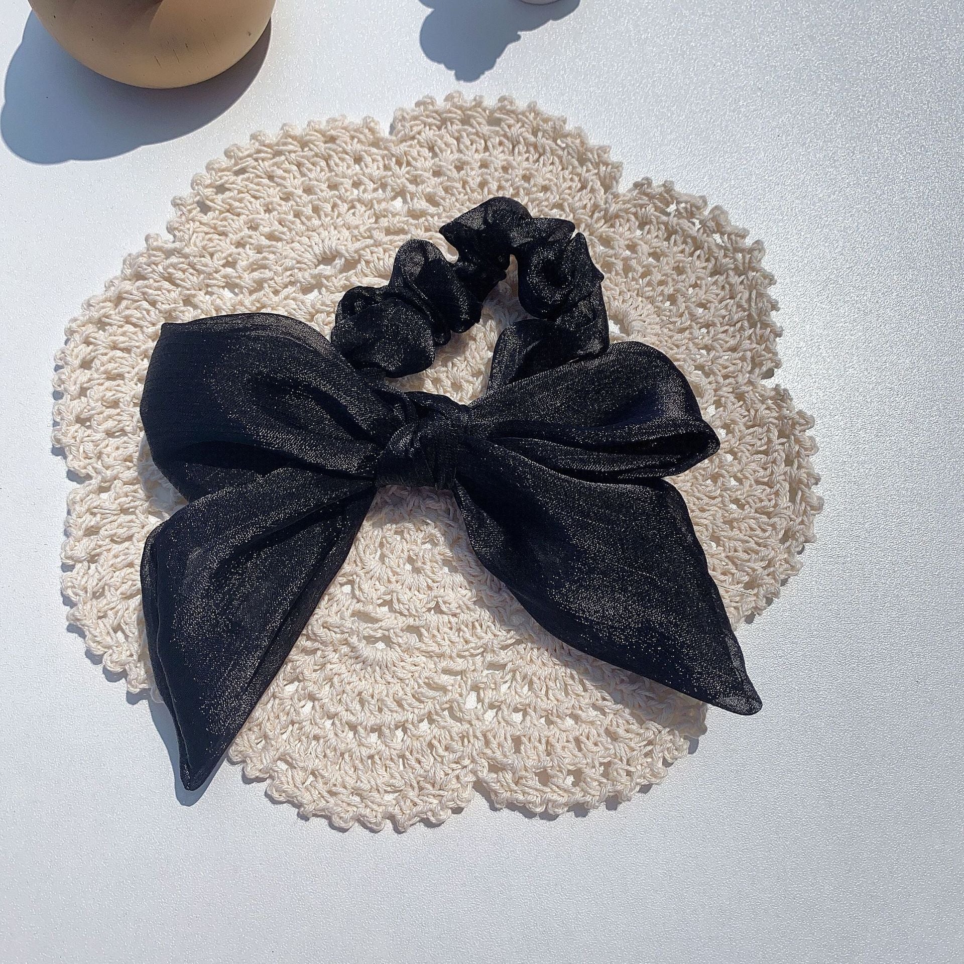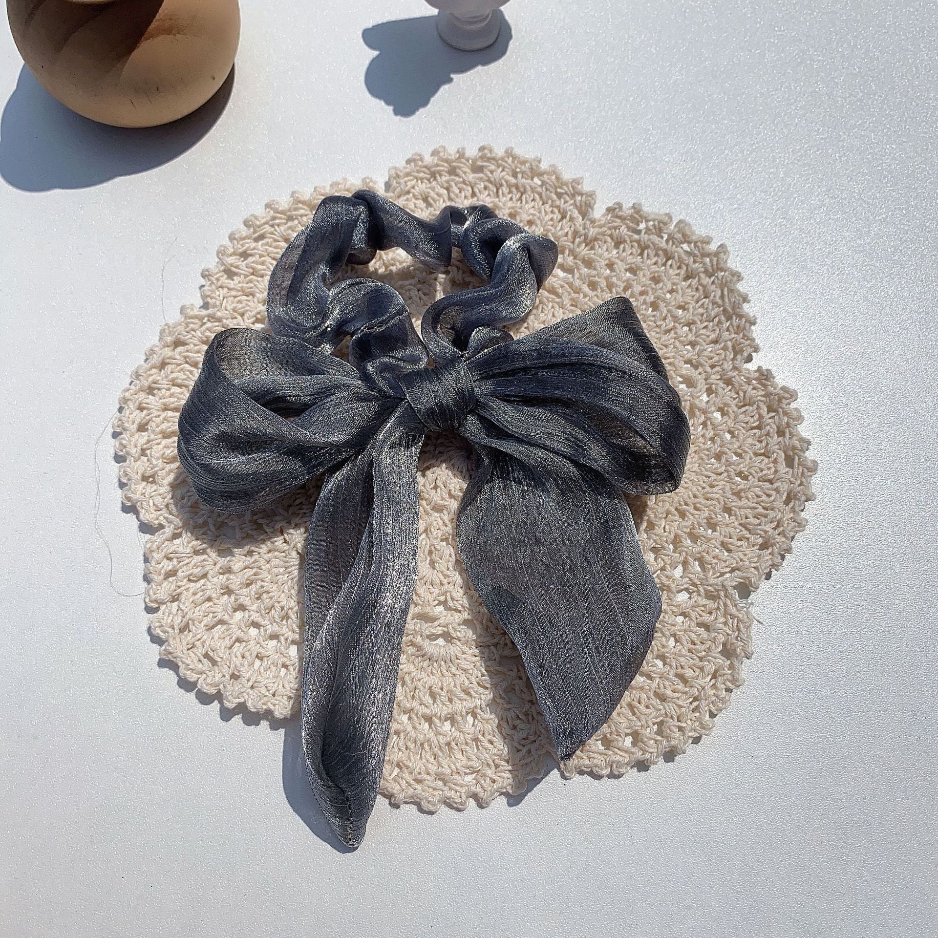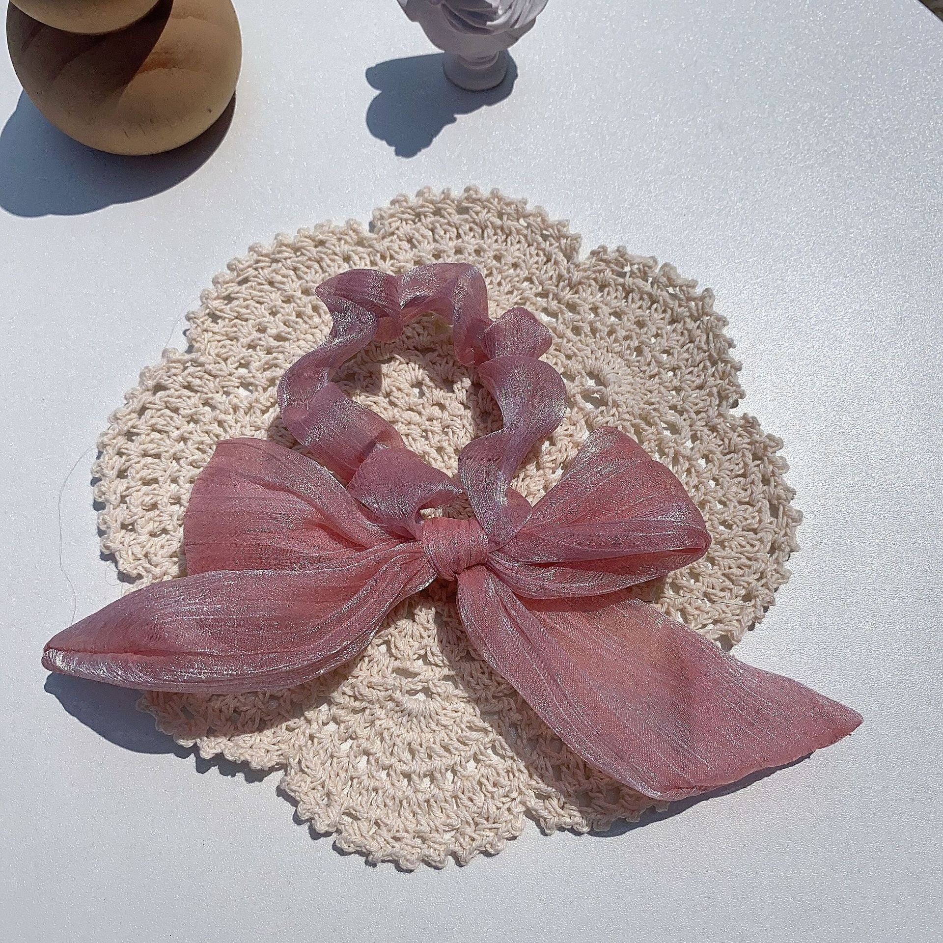 HX-327韓版珠光大號蝴蝶結大腸髮圈歐根紗頭繩超仙森系少女心髮繩髮飾品ycintestine