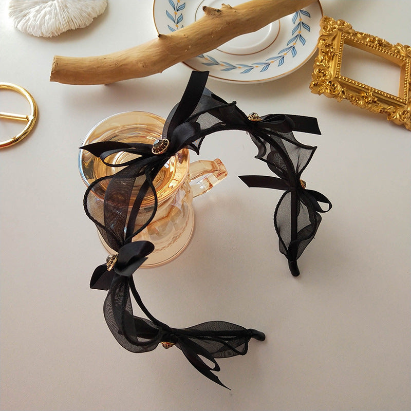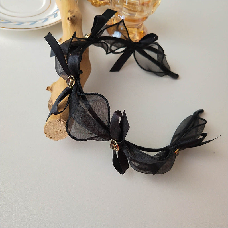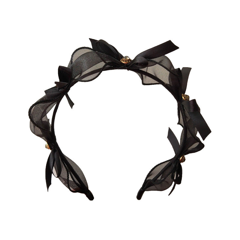 HX-334原創自制公主氣質蕾絲網紗鑲鑽蝴蝶結百搭髮箍女髮卡頭箍頭飾飾品HX20210903