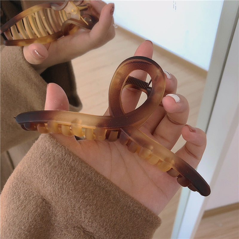 HX-364琥珀秋冬色系!磨砂感大號抓夾氣質棕色啞光後腦勺髮夾鯊魚夾髮飾HX20210906