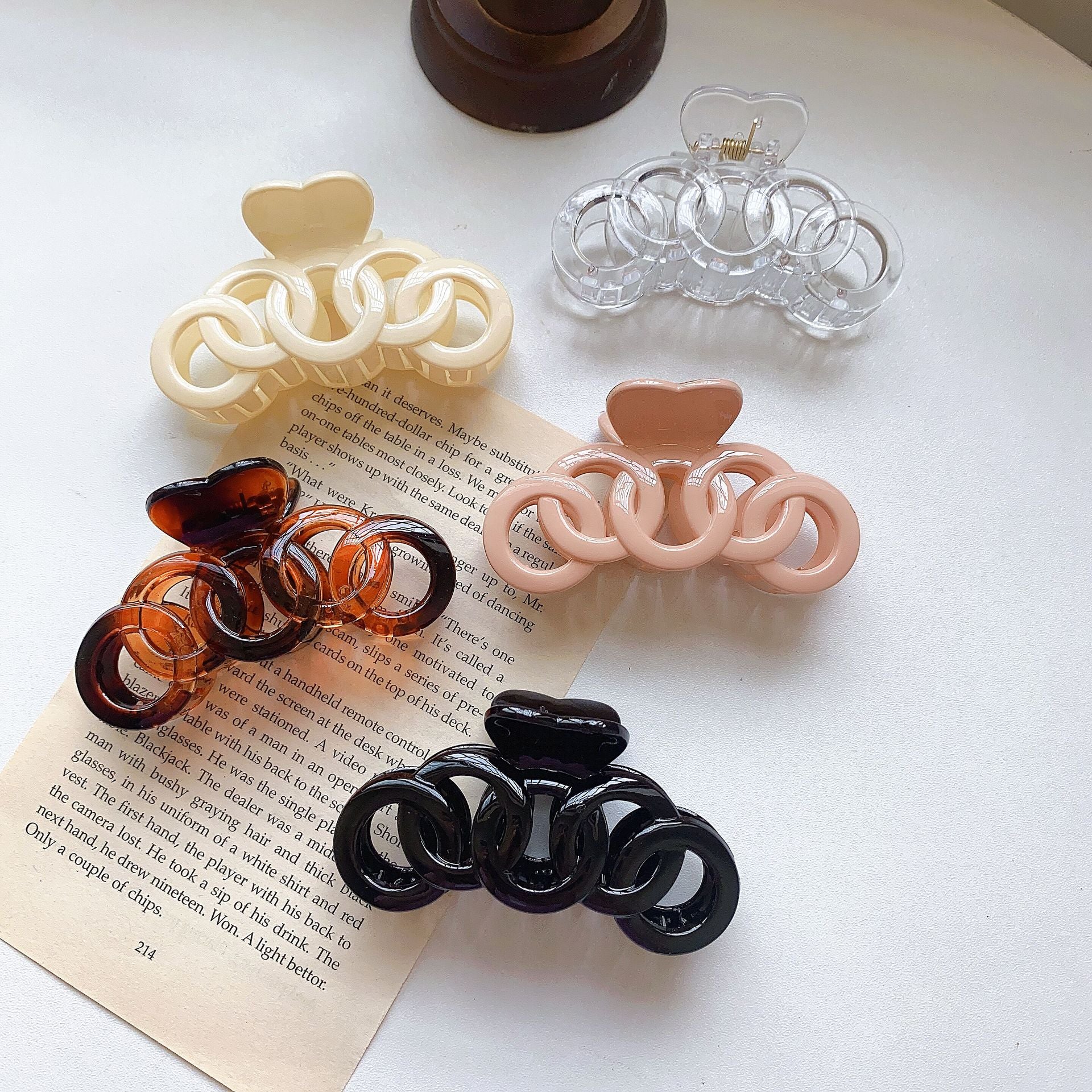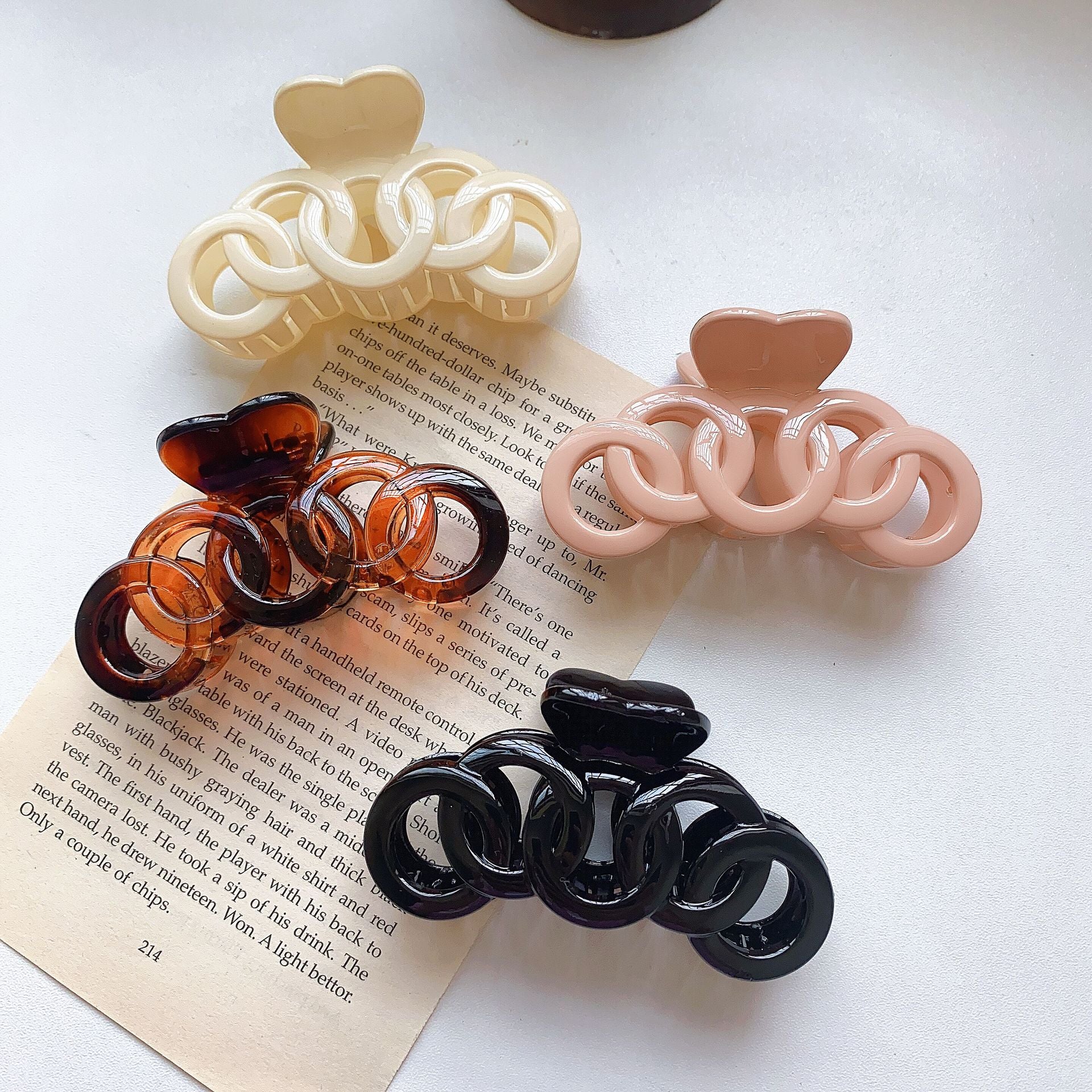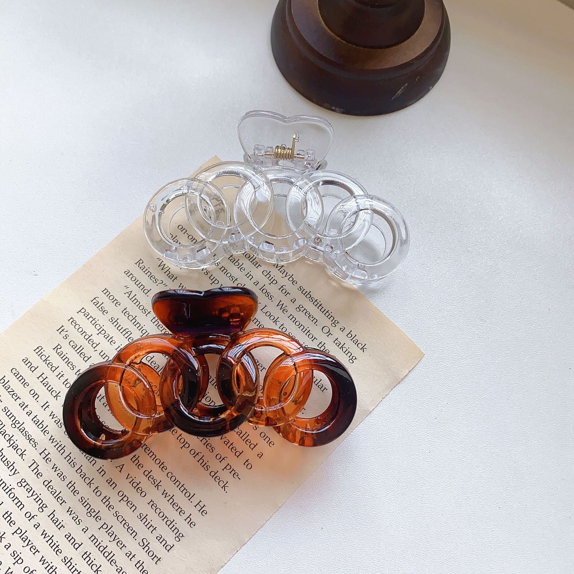 HX-566韓國ins復古法式優雅氣質亞克力大號圓圈圈慵懶盤髮抓夾髮夾鯊魚夾ycclamping