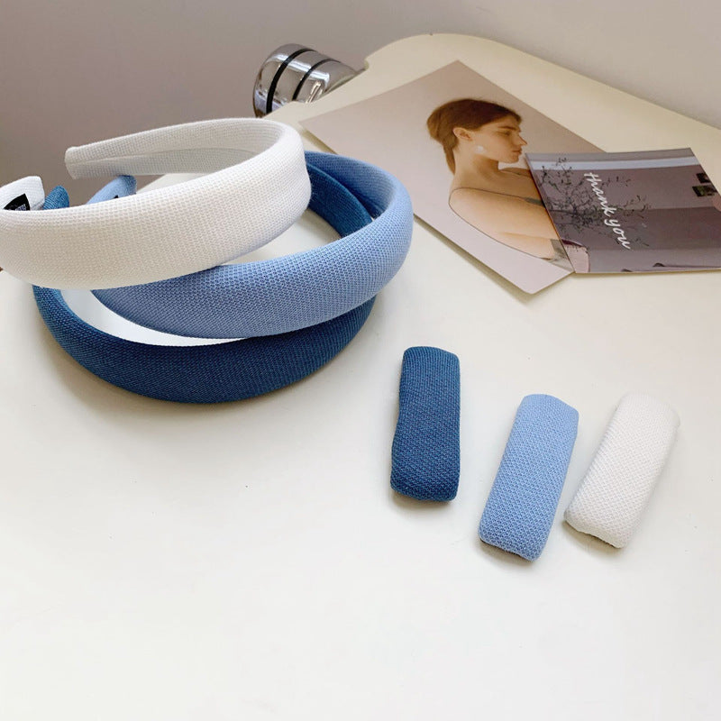 HX-575新款小清新藍色組合簡約純色壓髮箍寬邊海綿加厚布藝bb夾瀏海側HX20210906