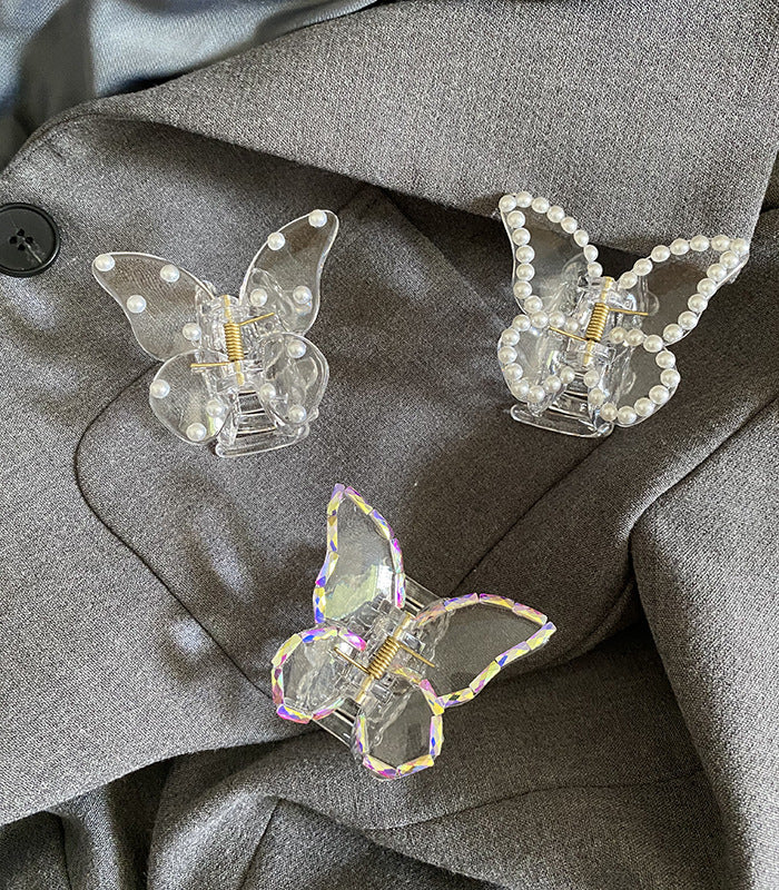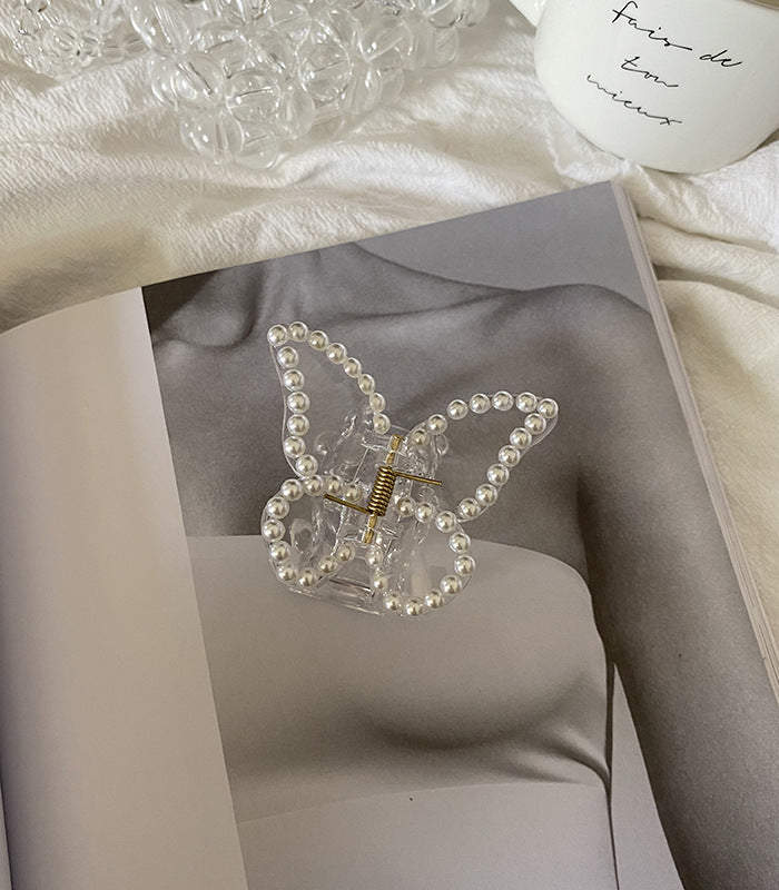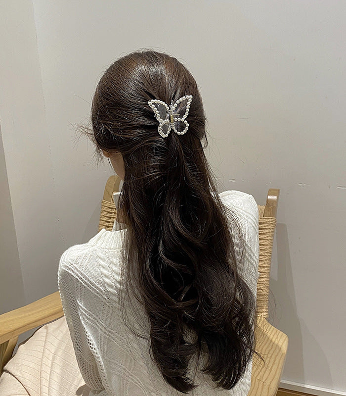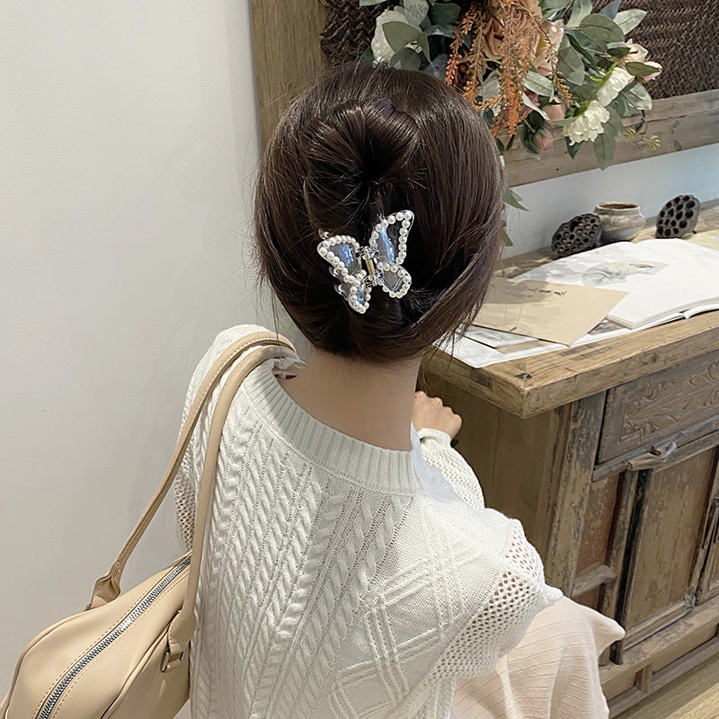 HX-673夢幻~仙女氣質蝴蝶抓夾髮夾ins網紅珍珠後腦勺髮抓盤髮頂夾鯊魚夾ycclamping20210615