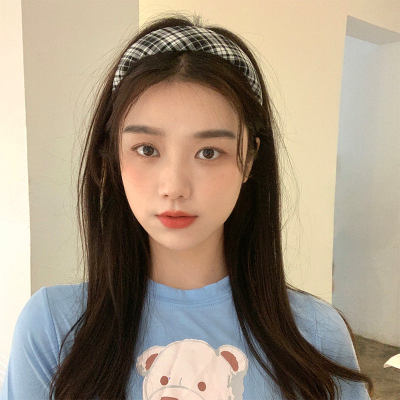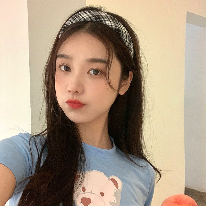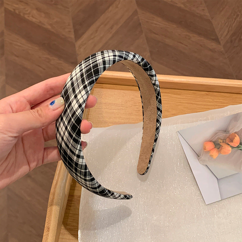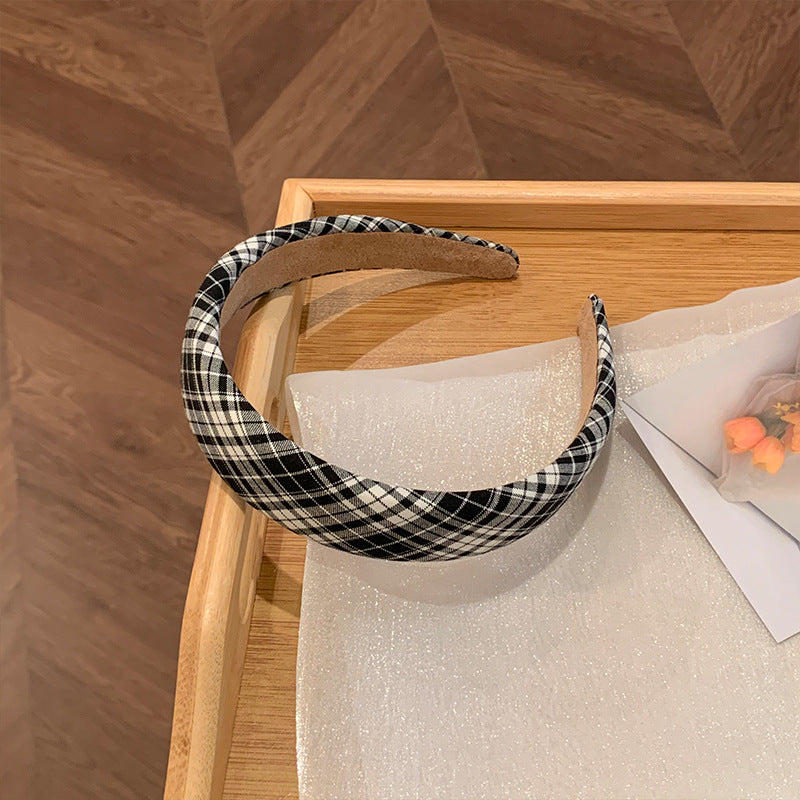 HX-710幼態初戀感~法式復古厚款海綿黑白格子頭箍網紅ins海綿寬邊髮卡夏HX20210820