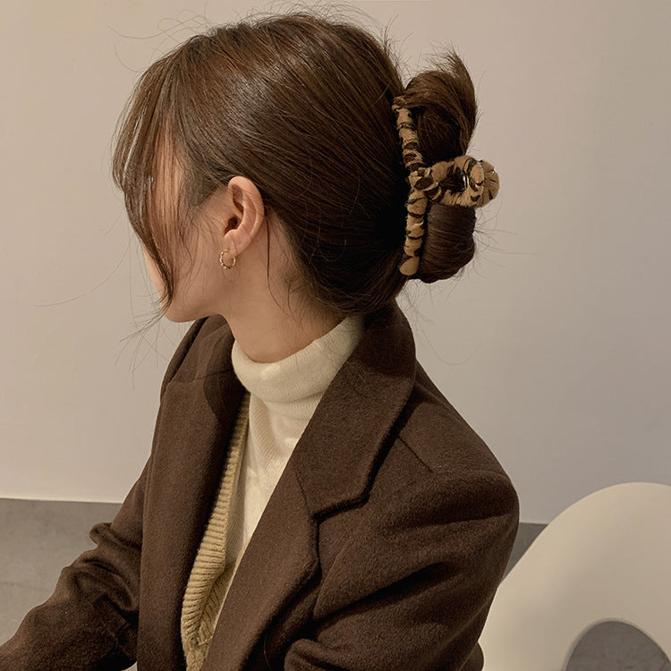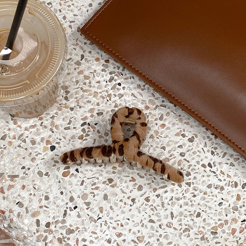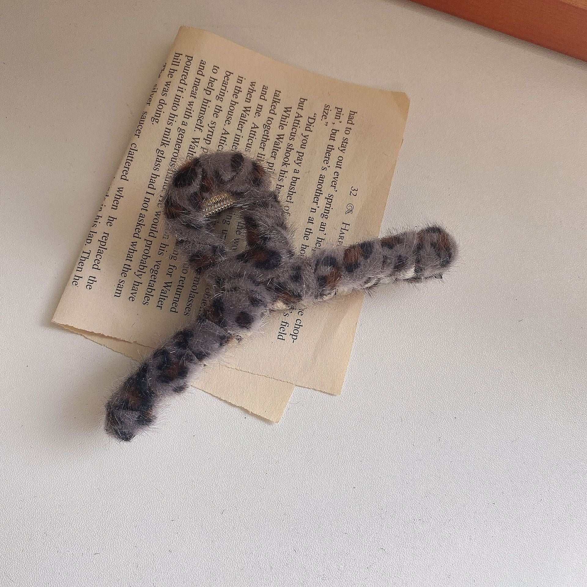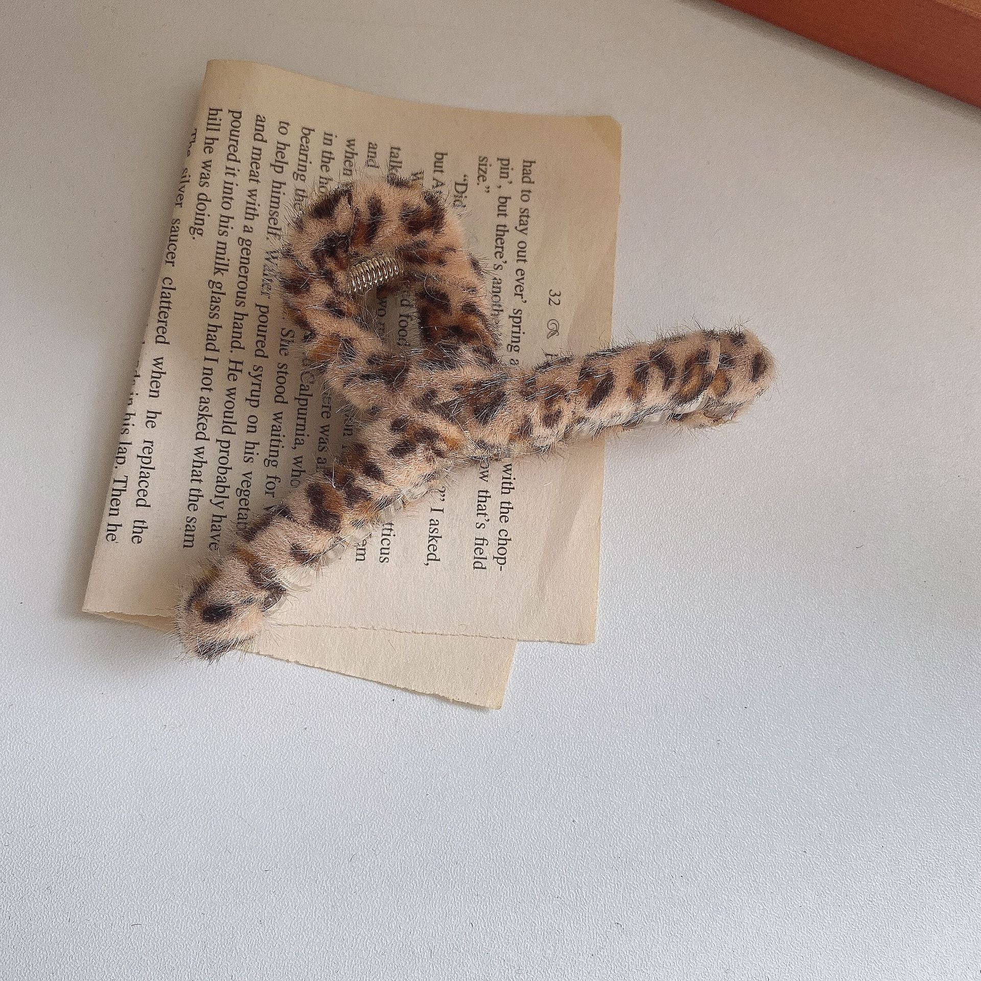 HX-770秋冬新款抓夾交叉豹紋毛絨髮夾網紅潮夾子頭飾鯊魚夾ycclamping