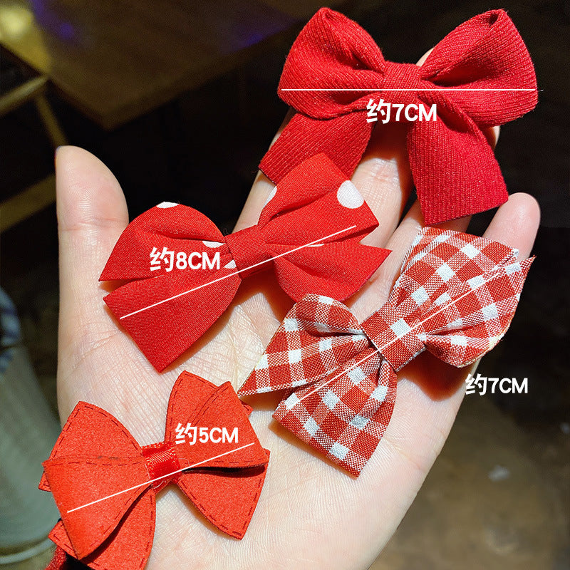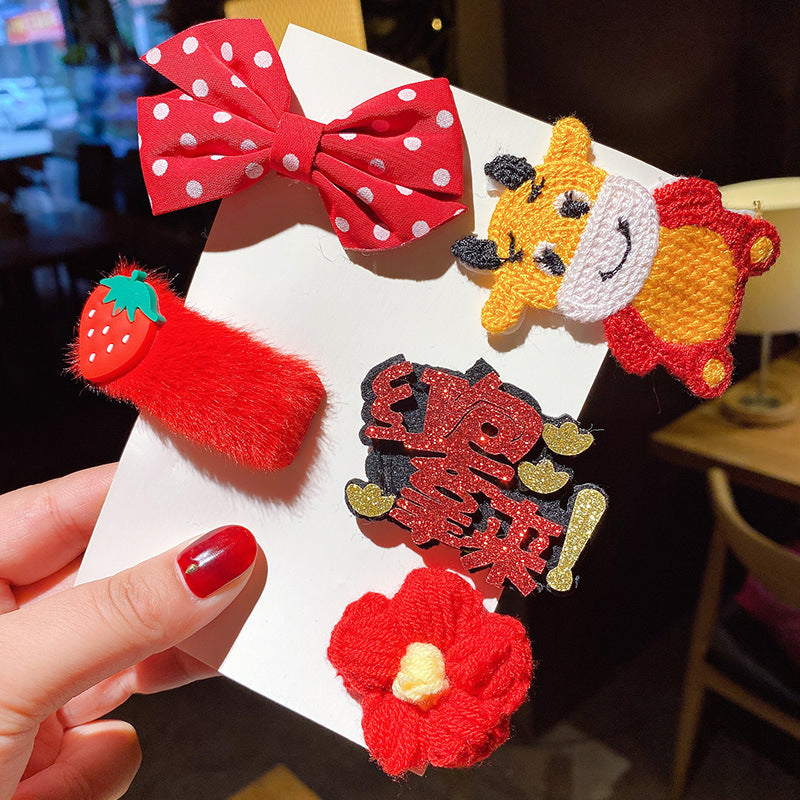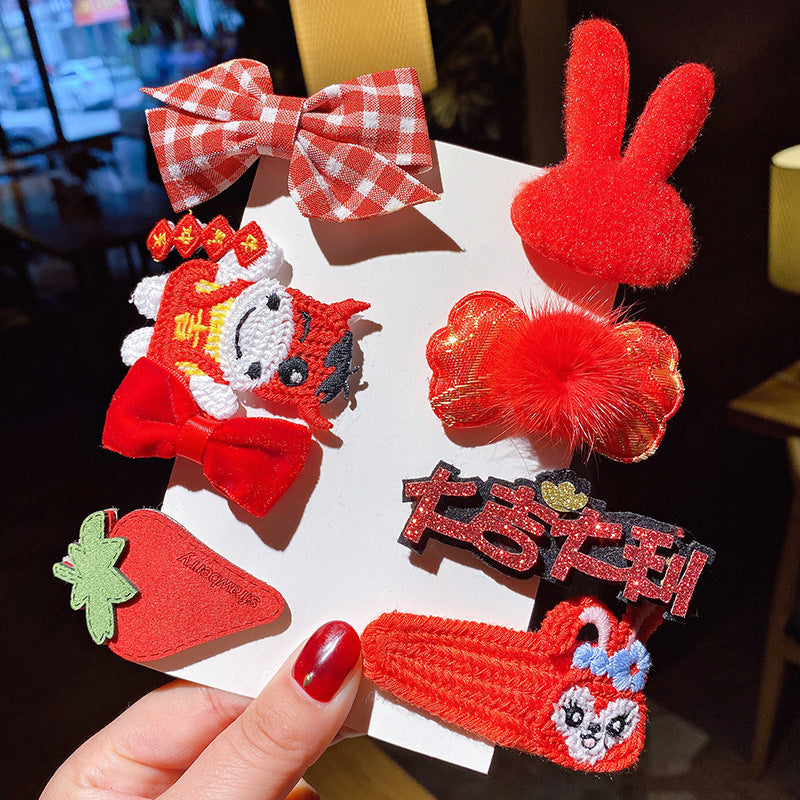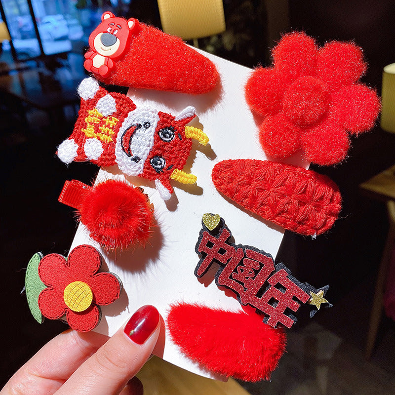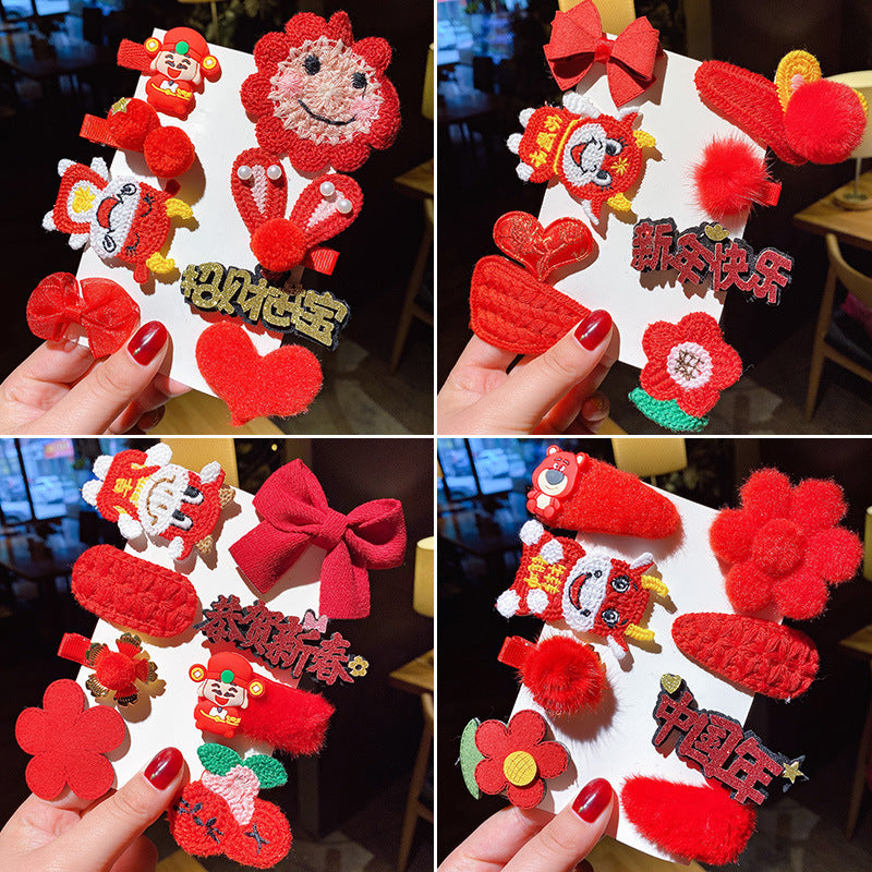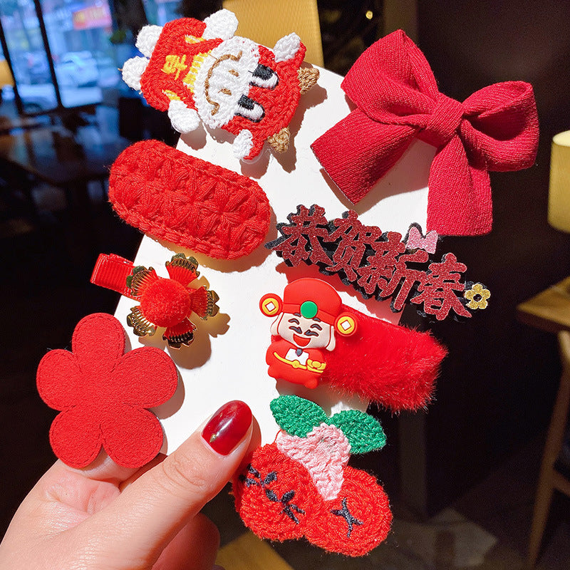 HX-838兒童新年髮夾不傷發女童過年發卡紅色頭飾中國風唐裝寶寶髮飾套裝HX20211003