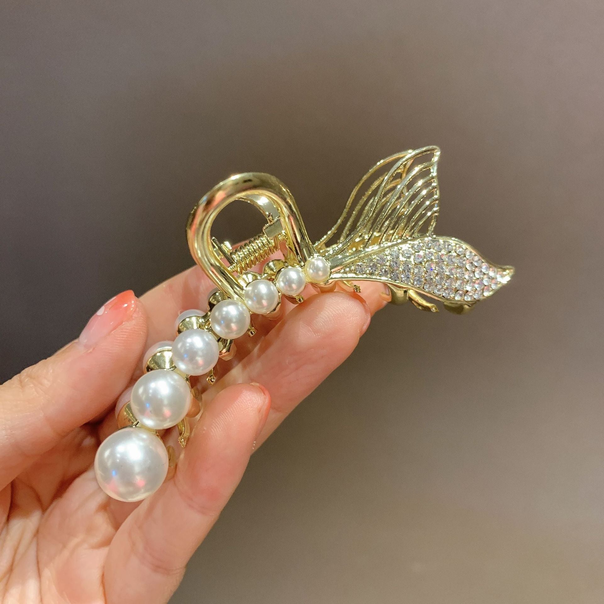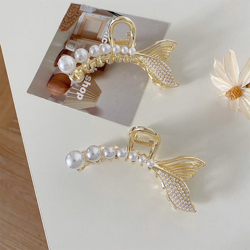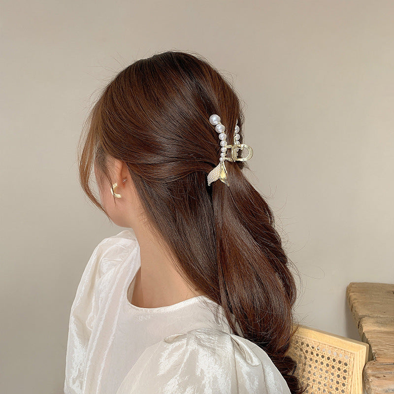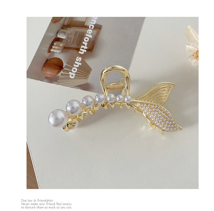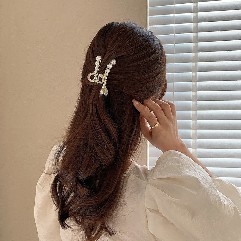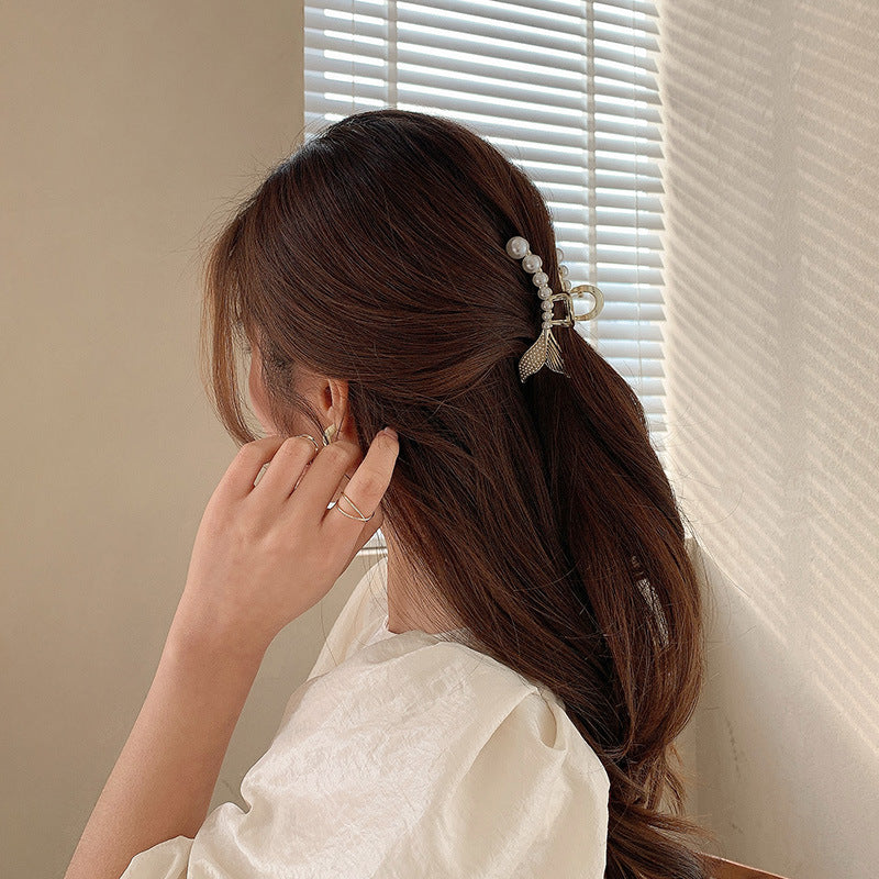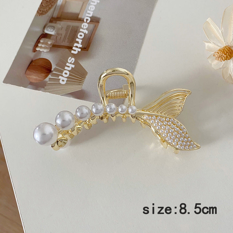 HX-885金屬珍珠抓夾韓國夾頭髮的夾子優雅氣質後腦勺半紮髮魚尾髮夾髮卡鯊魚夾ycclamping