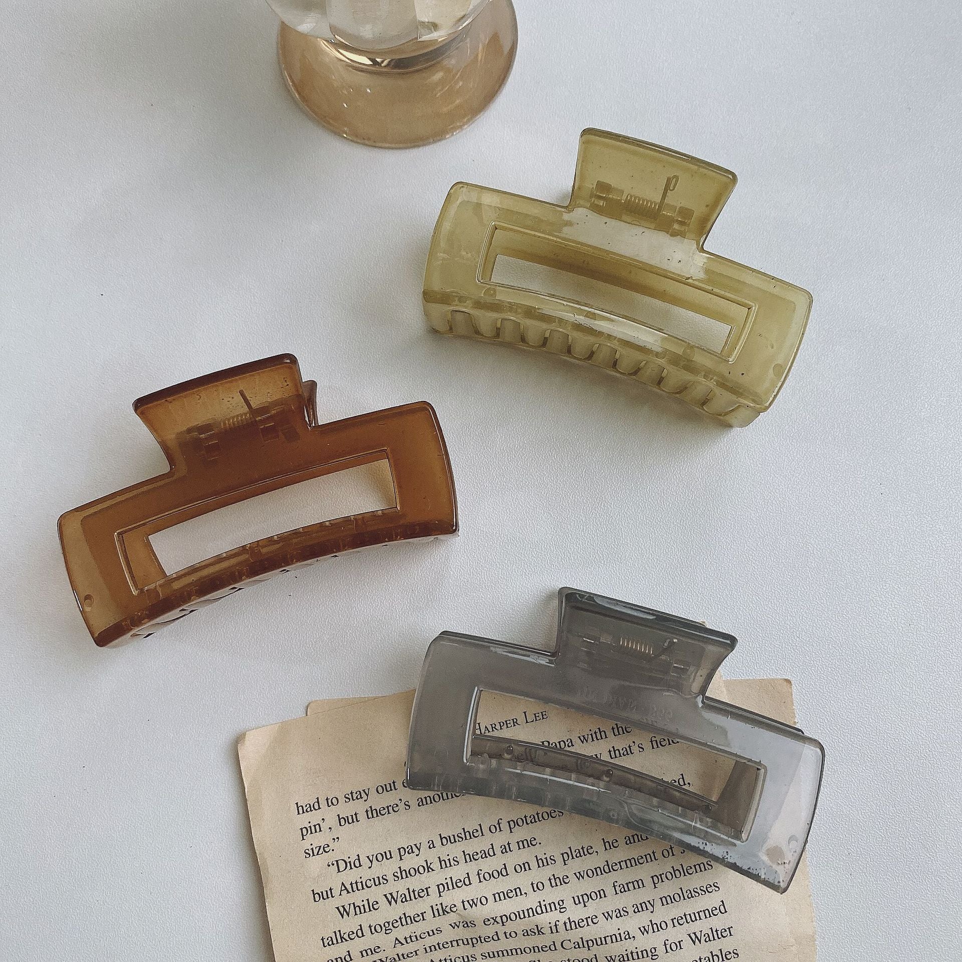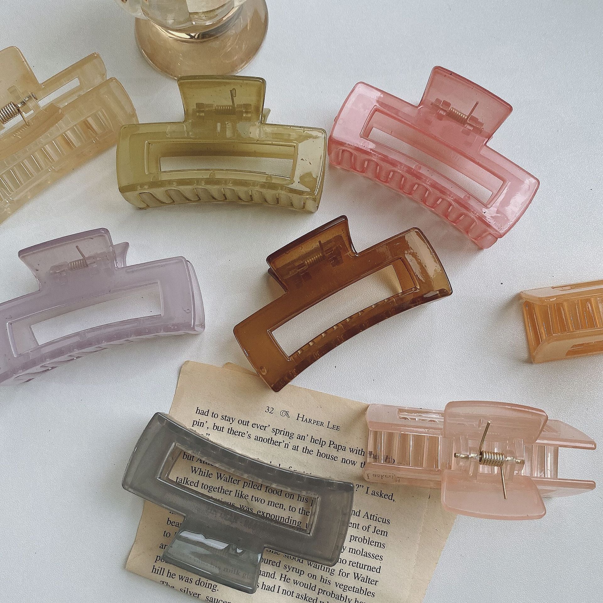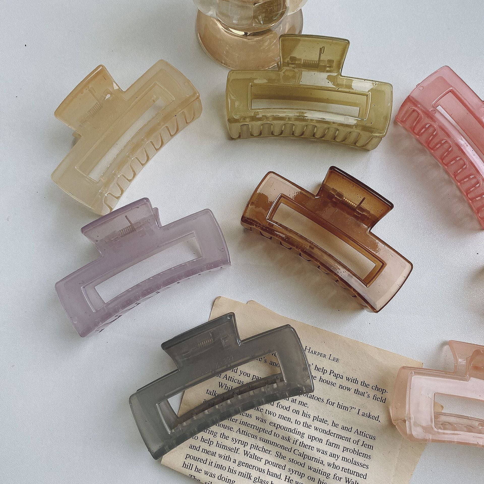 HX-903果凍色方形中號頭髮抓夾後腦勺子頭飾女磨砂慵懶髮夾髮飾鯊魚夾ycclamping
