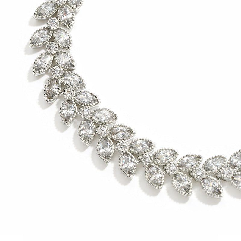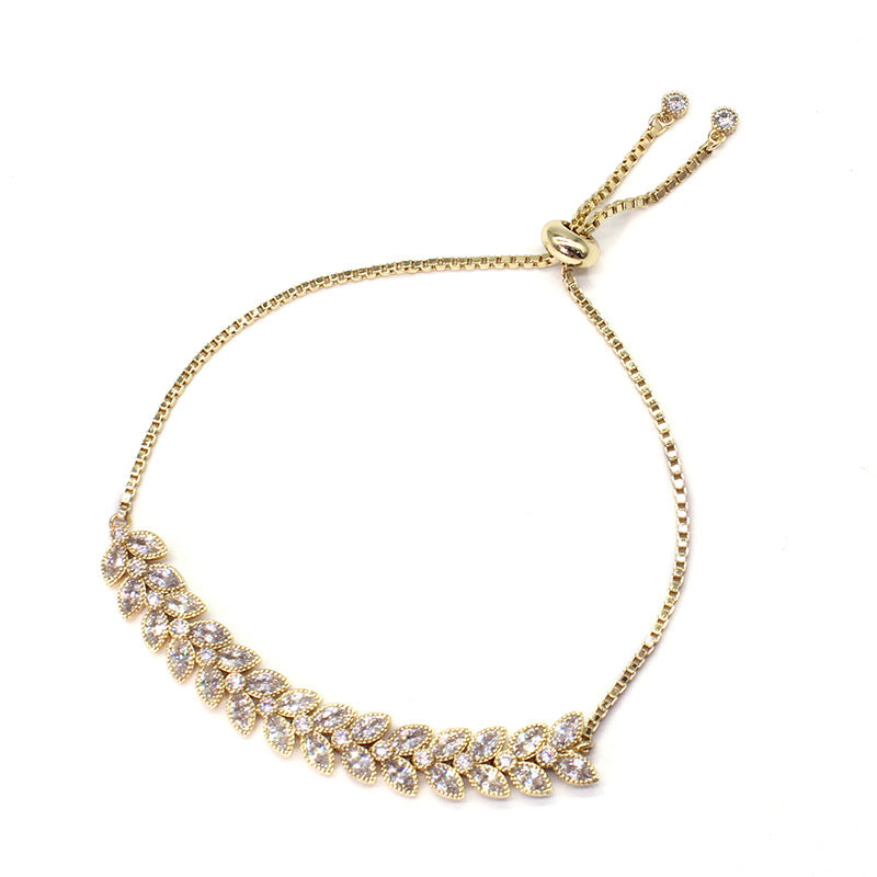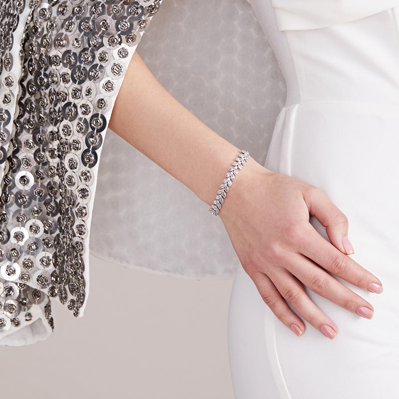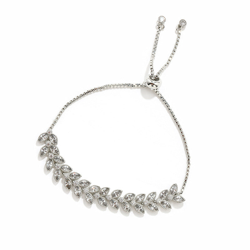 NCB00229-1飾品 韓版時尚百搭高檔滿鋯手鏈女 繩索扣可調節葉子銀色手飾kj202103