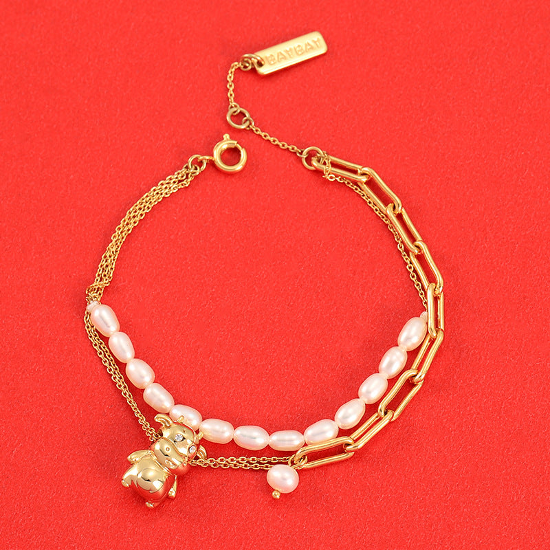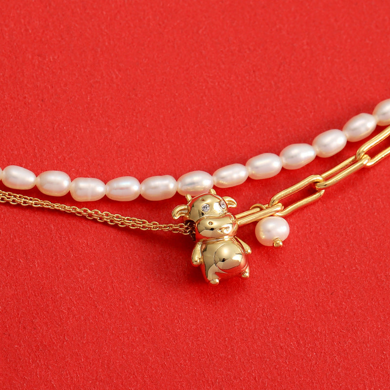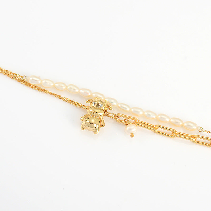 NCB00707中國風新年萌寵牛淡水珍珠手鏈女牛氣沖天設計師原創設計時尚手環kjcutecow