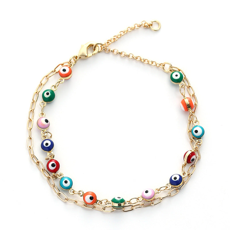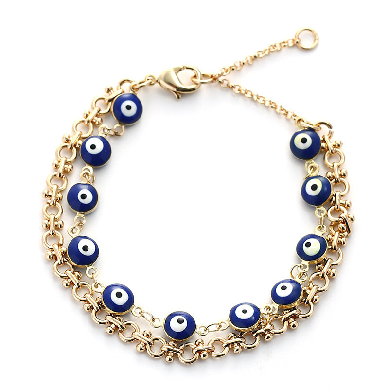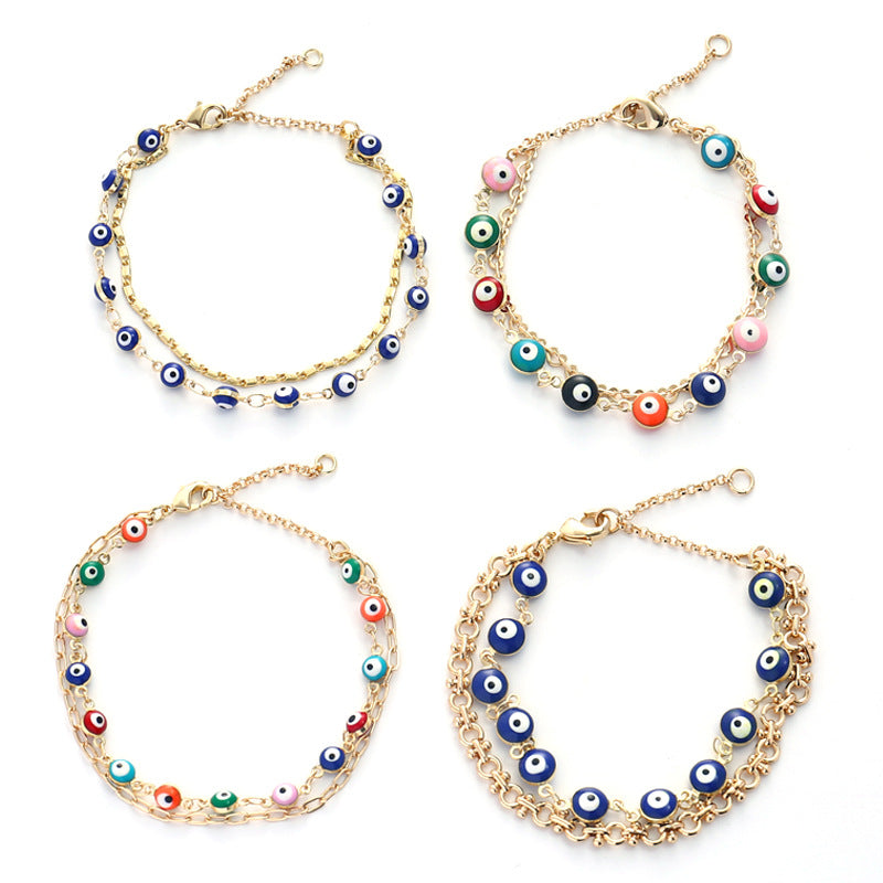 NCB00984飾品 歐美跨境專供時尚個性惡魔之眼疊戴手鏈女金屬鏈條手飾kj202103