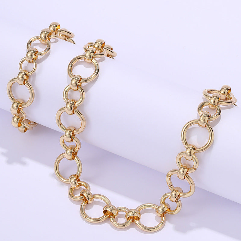 NCB00997金屬鍍金誇張圈圈項鏈套裝女 歐美跨境專賣ins網紅熱賣古巴鏈kj202106