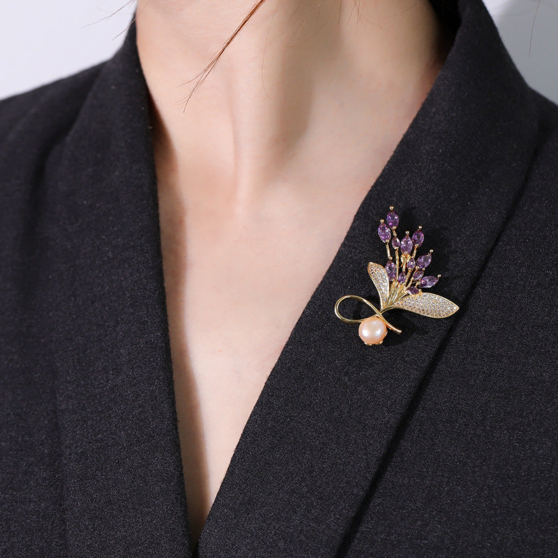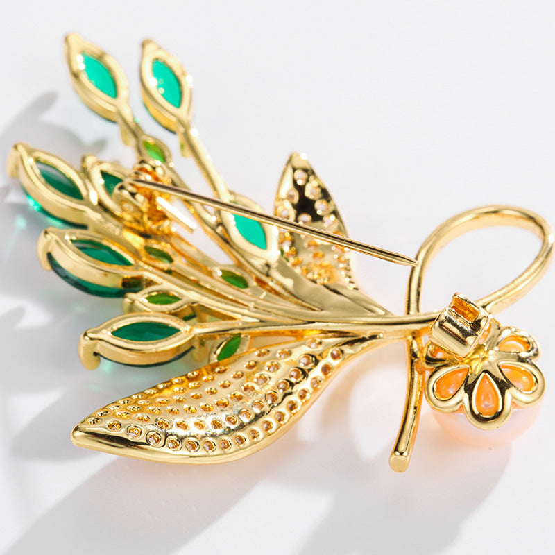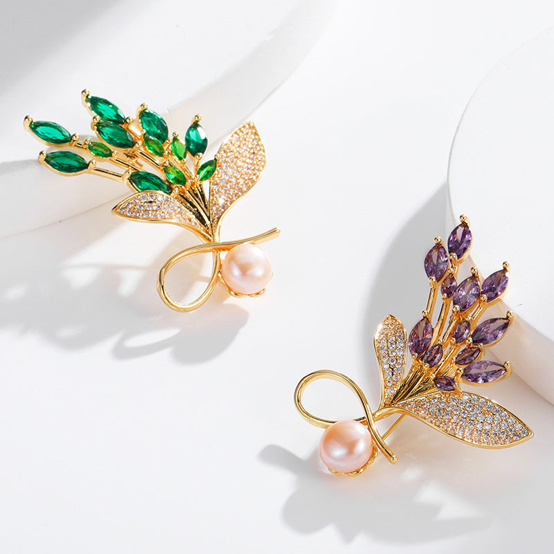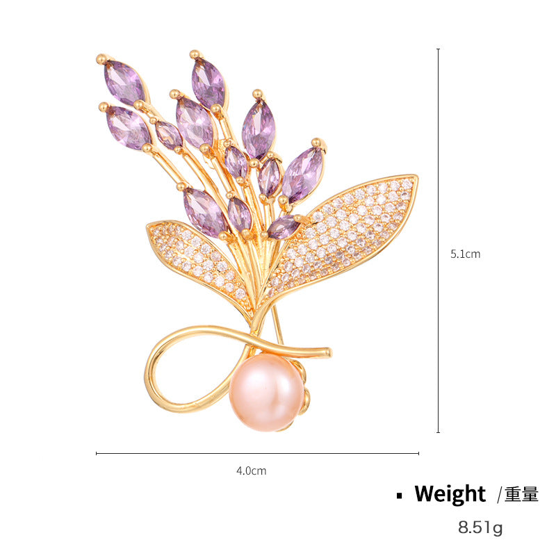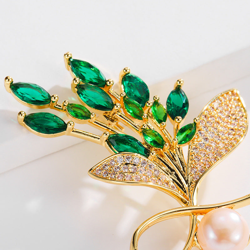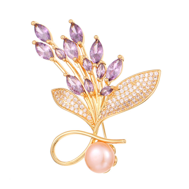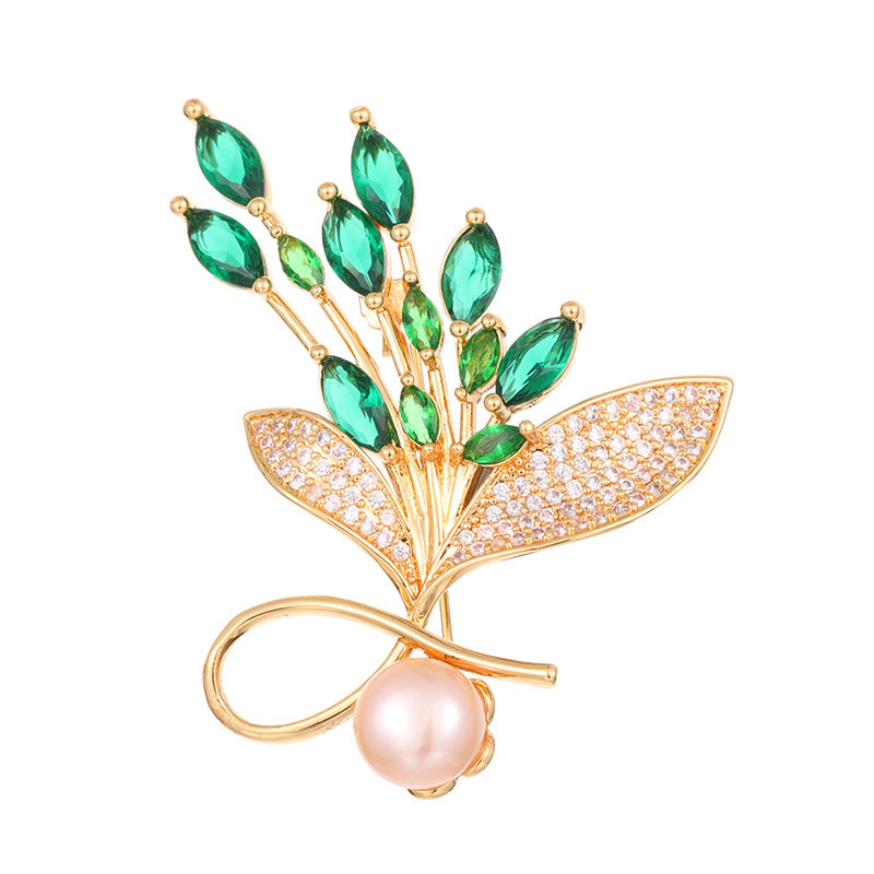 NCC00128銅鑲鋯鍍真金花卉胸針女式韓版氣質淡水珍珠小西服搭配胸花KJ20210812