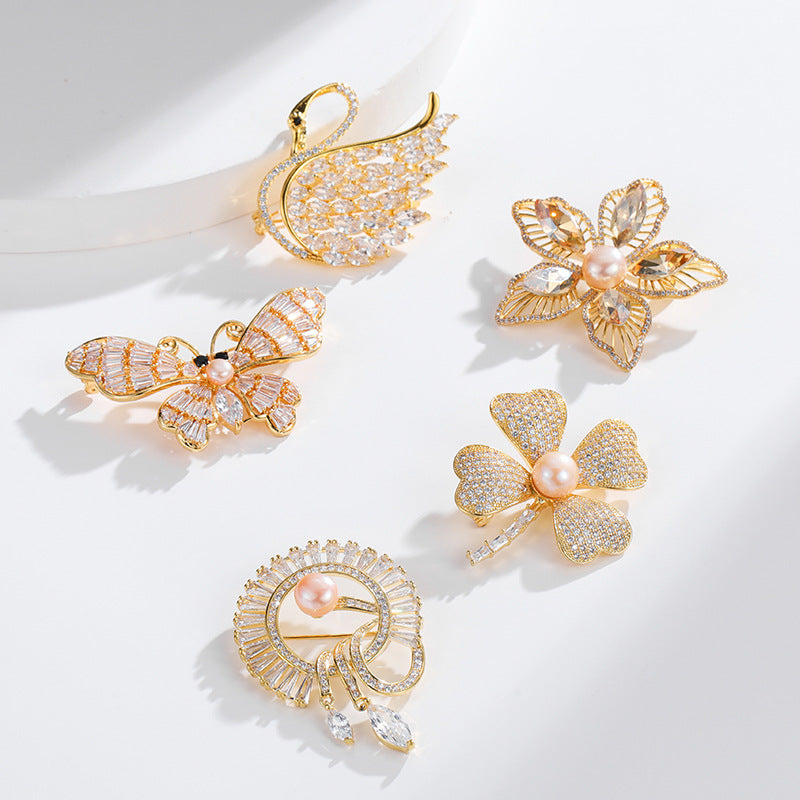 NCC00140銅鍍真金鑲鋯3A鋯石個性設計胸花女式 秋季西服搭配輕奢胸針KJ20210812