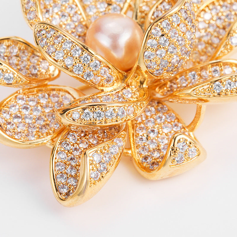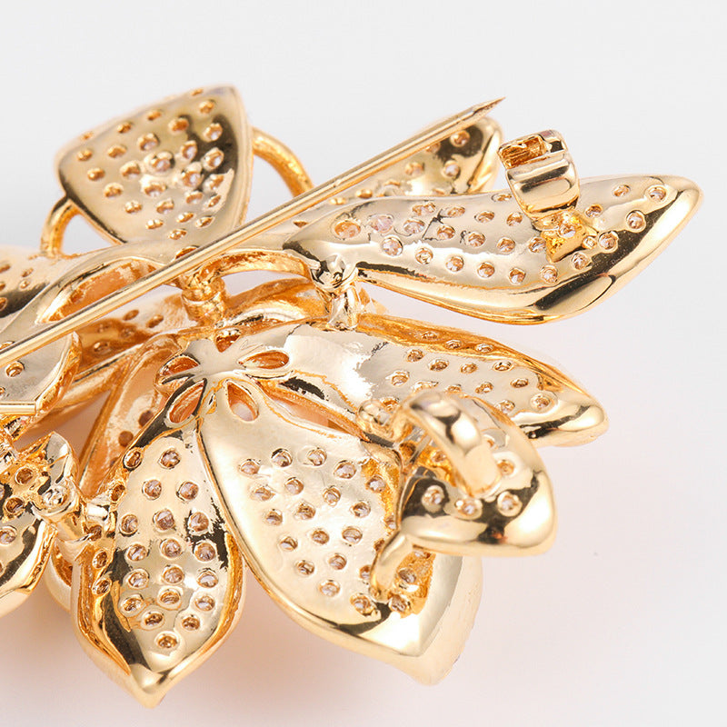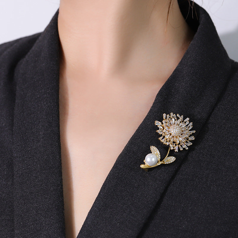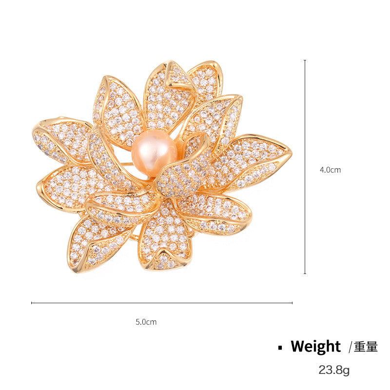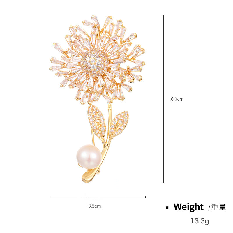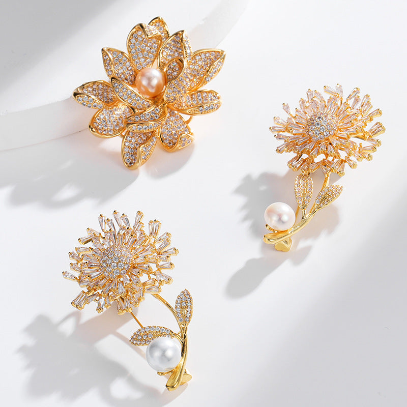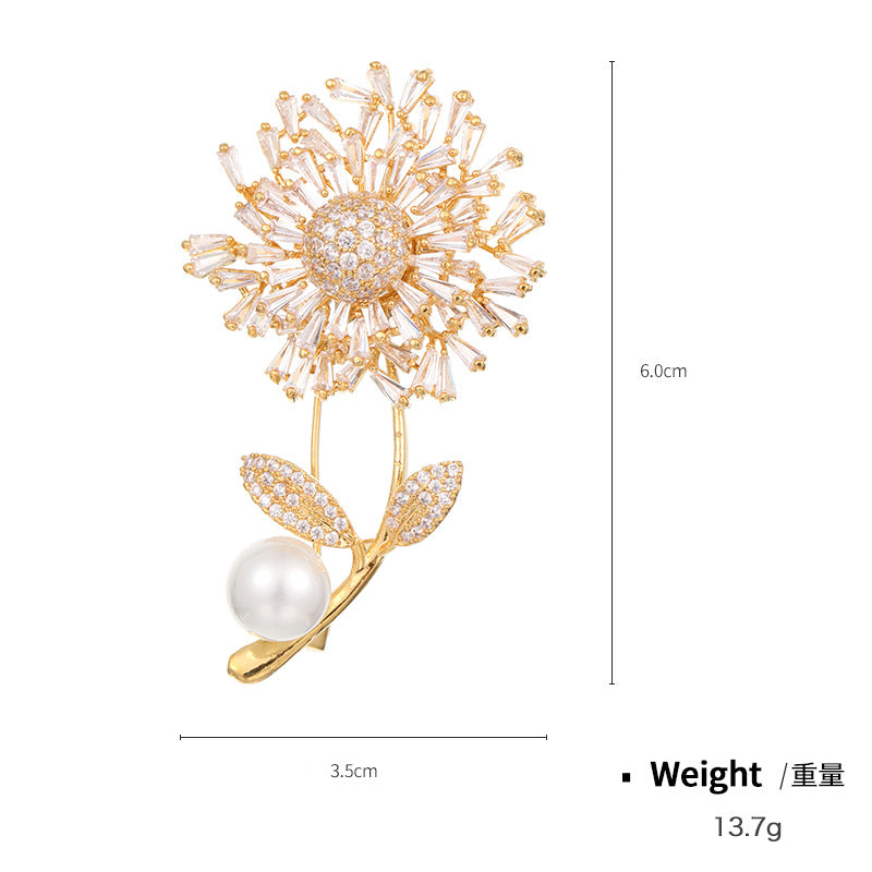 NCC00145韓版秋季西服搭配滿鋯胸花女式銅鍍真金鑲鋯花朵個性設計胸針KJ20210812