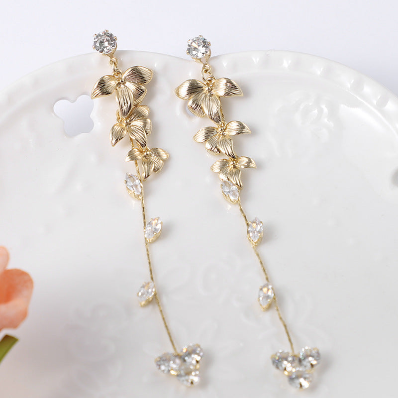 NCE00320飾品韓版時尚s925銀針鍍金鑲鋯長款耳環女式個性復古氣質耳飾kj202103