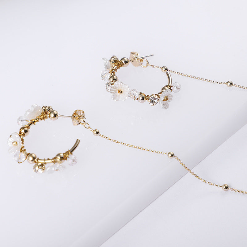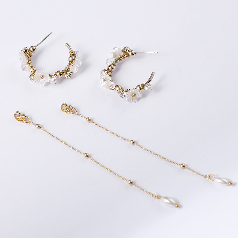 NCE00321韓版簡約鑲鉆hoops長款女式花卉珍珠耳環925銀針復古百搭耳飾kj202103