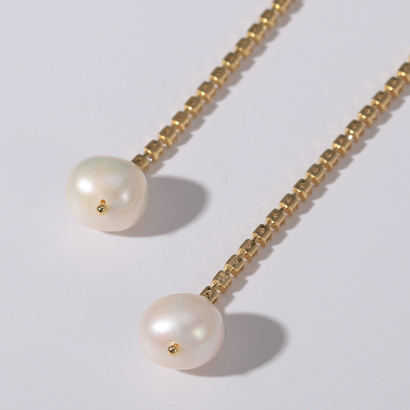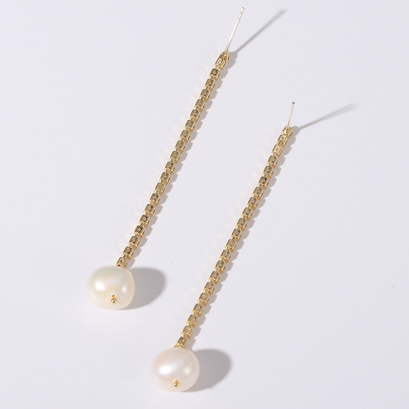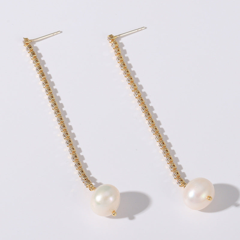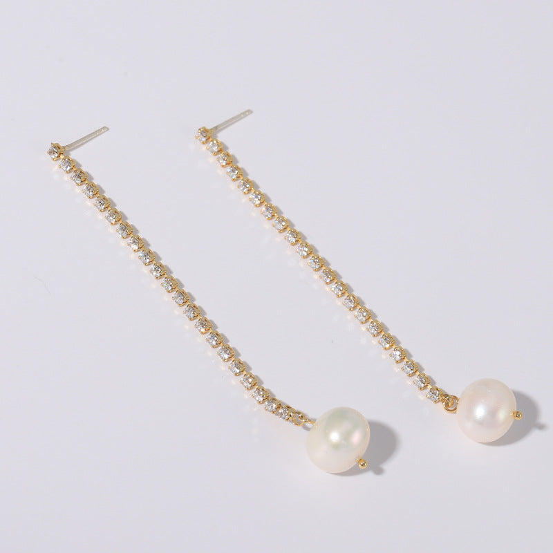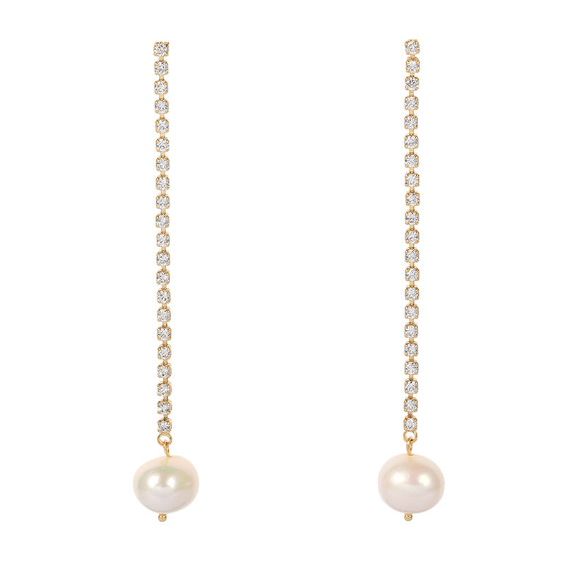 NCE00653-1韓版鑲鋯淡水珍珠耳釘ins風滿鋯耳墜時尚簡約小清新長款耳飾kjpearl