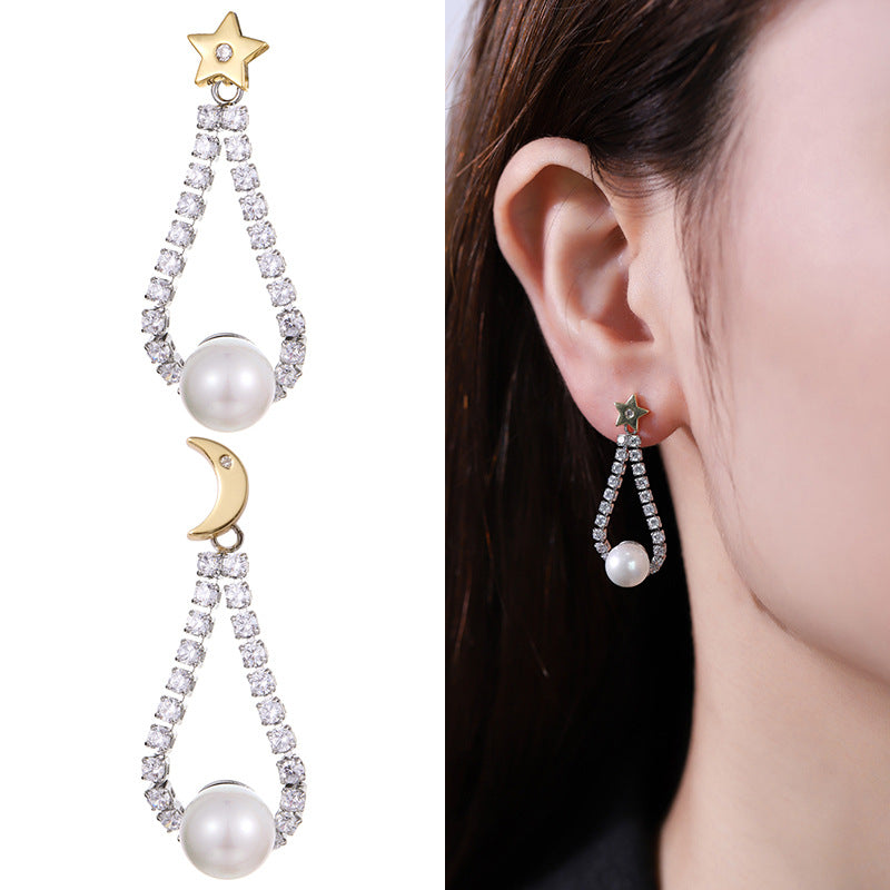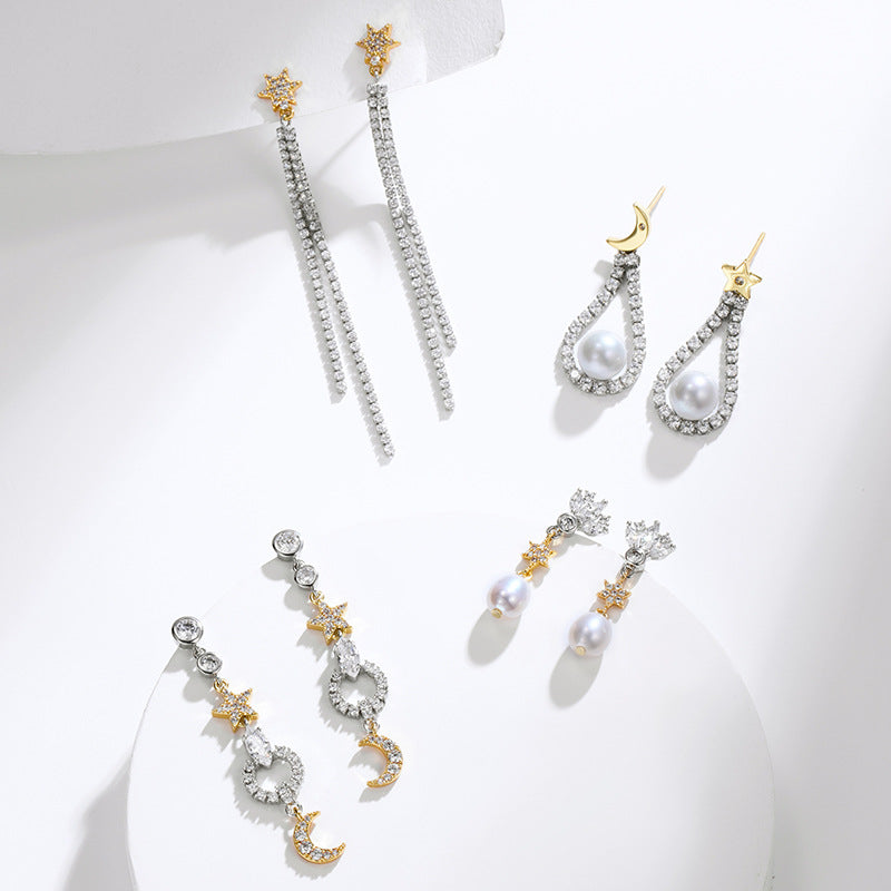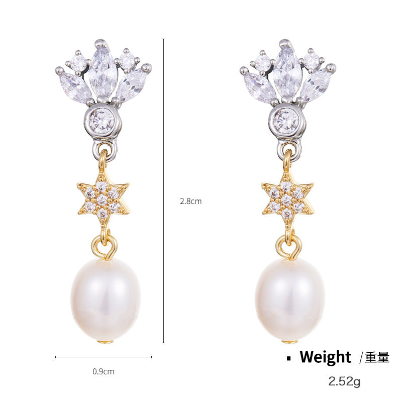 NCE00831真金鑲嵌鋯石長款流蘇耳環女 韓版簡約氣質珍珠輕奢銀針耳飾KJ20210812
