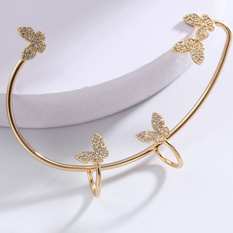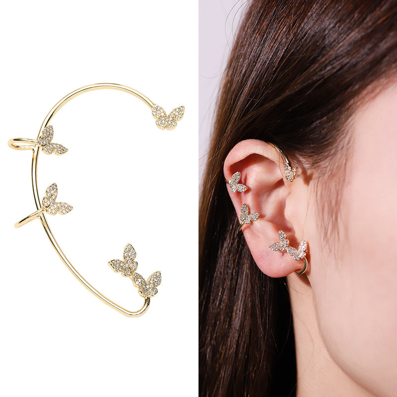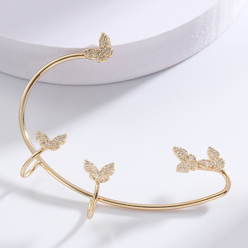 NCE00850銅鍍真金鑲鋯誇張型蝴蝶耳扣女原創設計歐美跨境專供復古耳飾kj202106