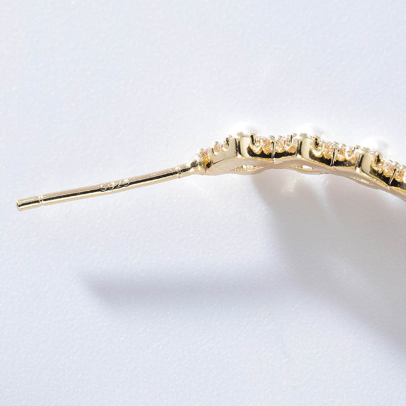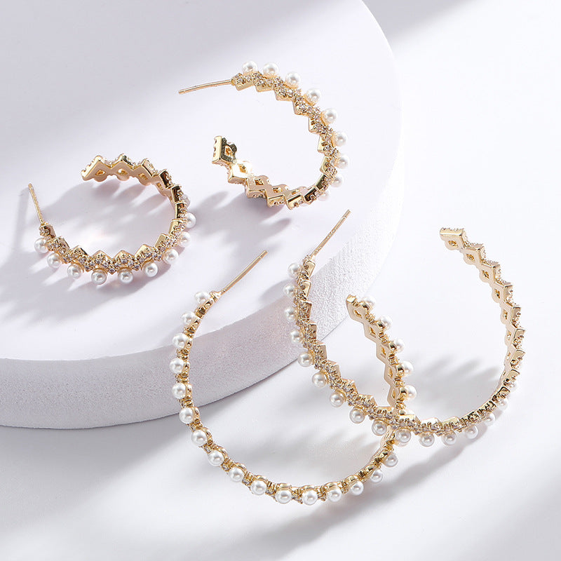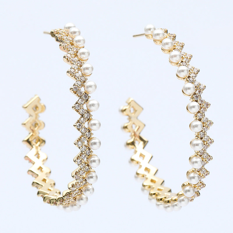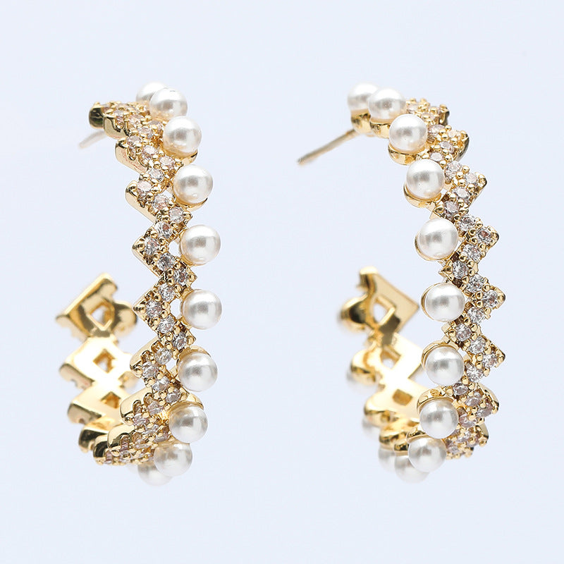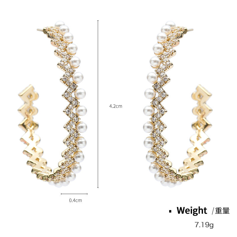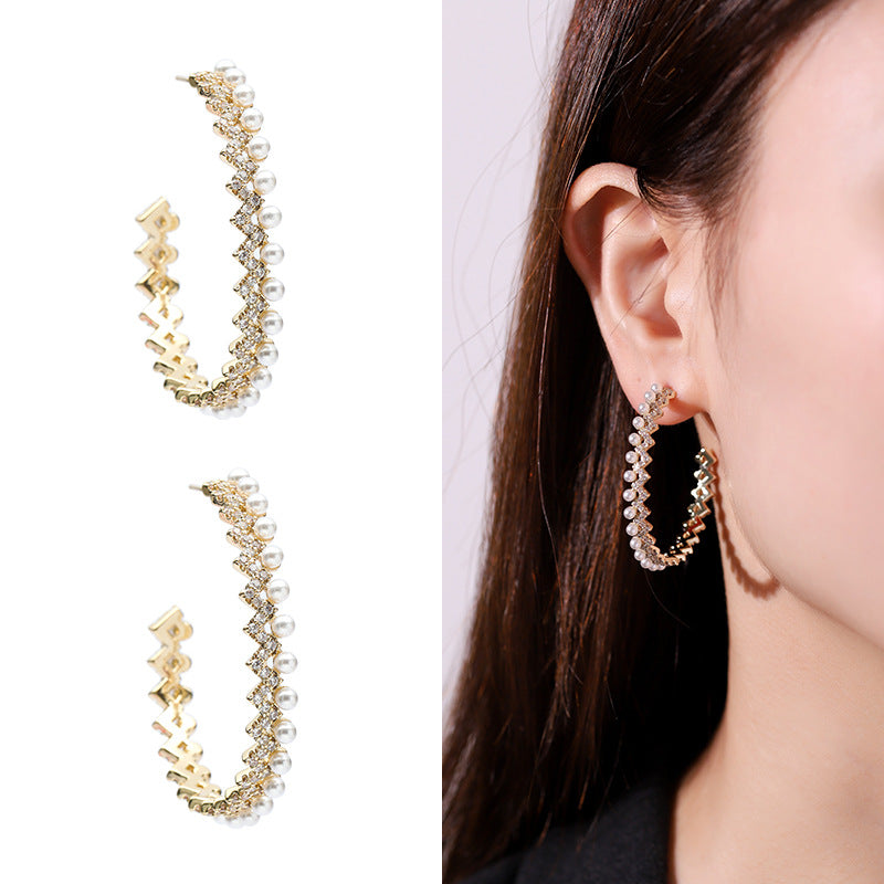 NCE00863-1 925銀針金屬鑲鋯珍珠耳環女韓版夏季百搭Hoop復古氣質圈耳環kj202106