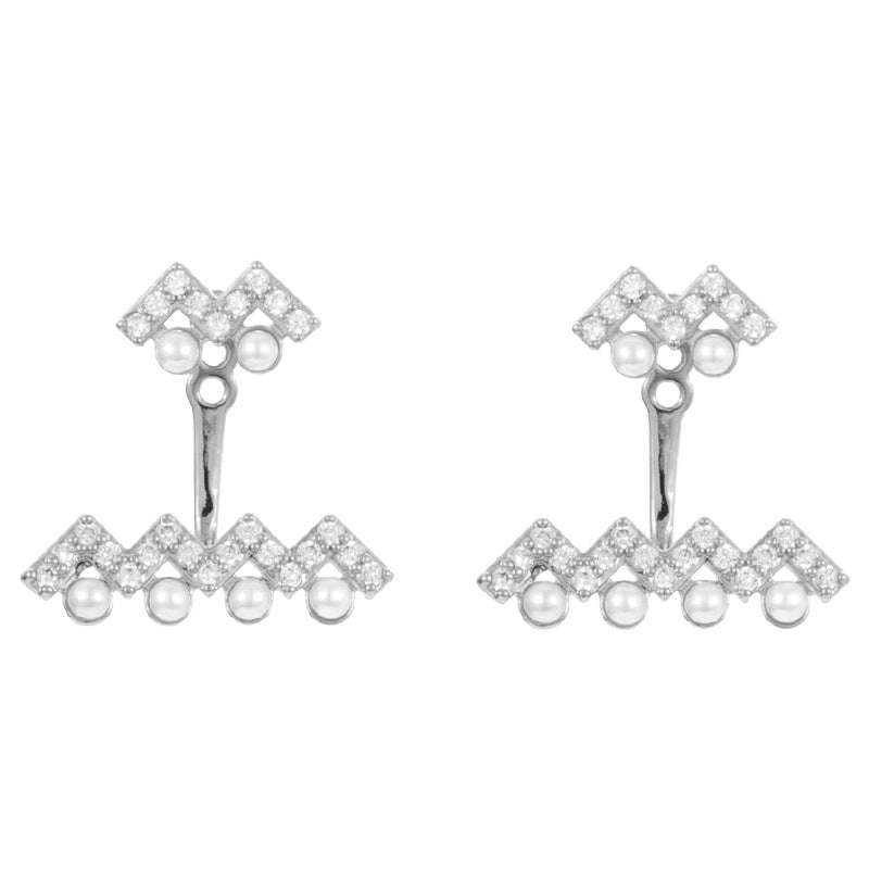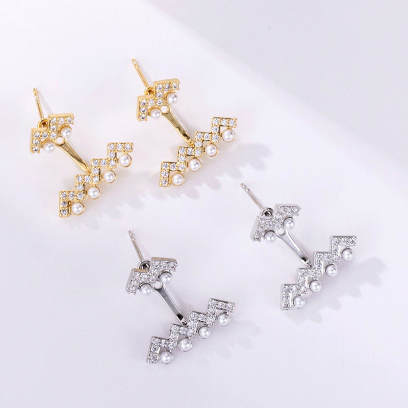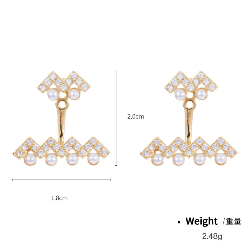 NCE00864925銀針銅鍍真金波浪耳釘女日韓百搭鑲鋯淡水珍珠後掛式耳飾kj202104