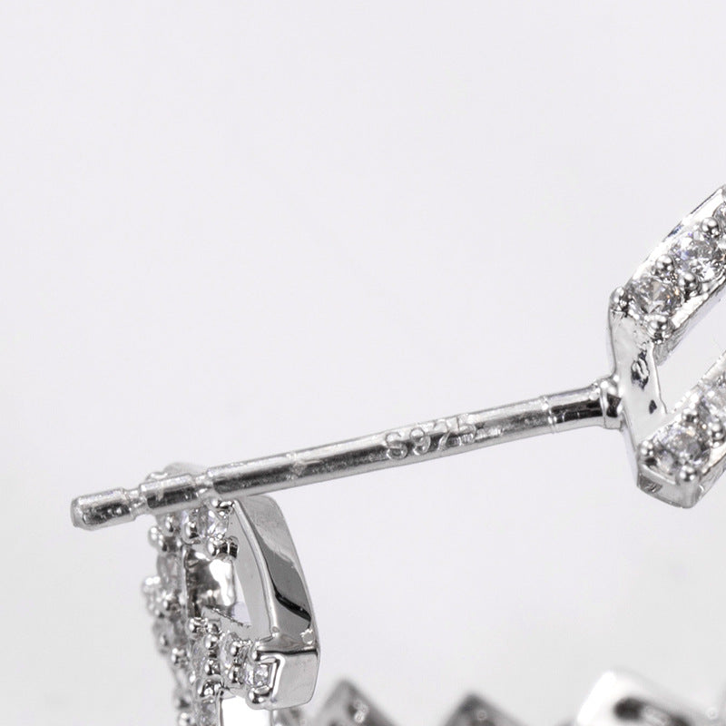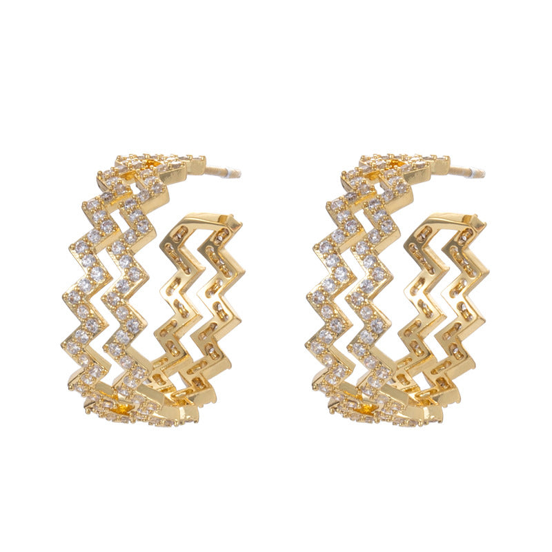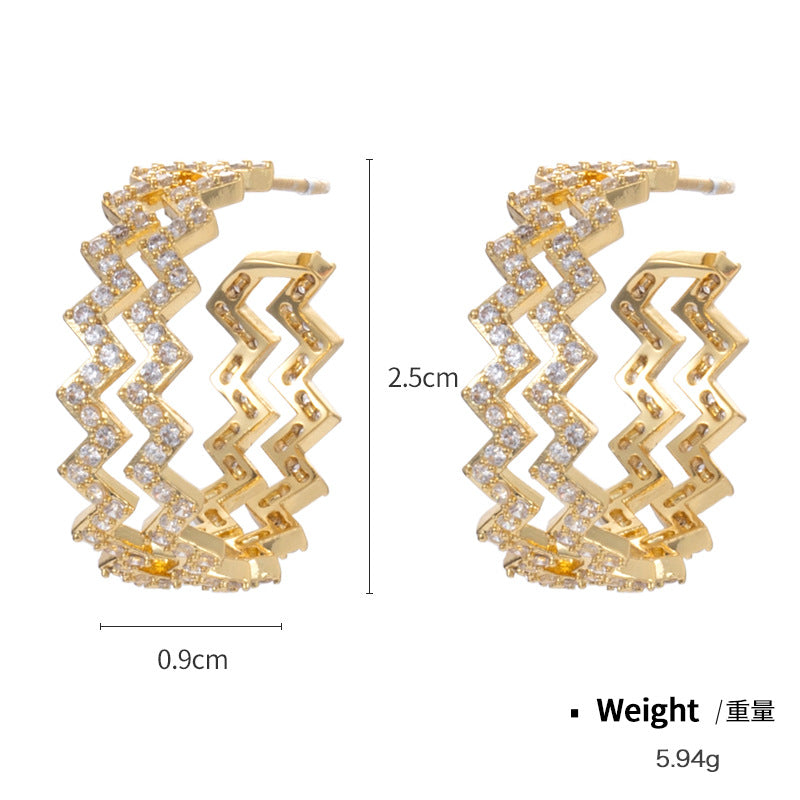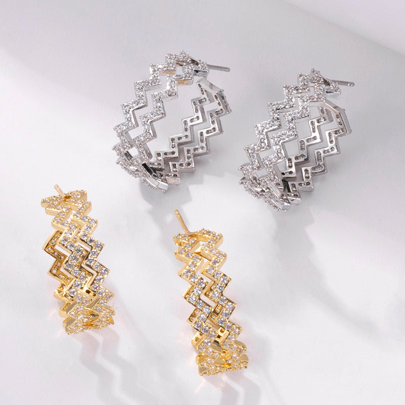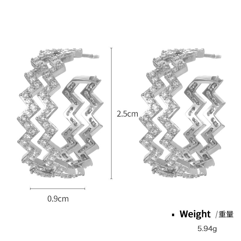 NCE00868 925銀針銅鍍真金鑲鋯W波浪型耳釘歐美ins風金銀跨境時尚耳環kj202104