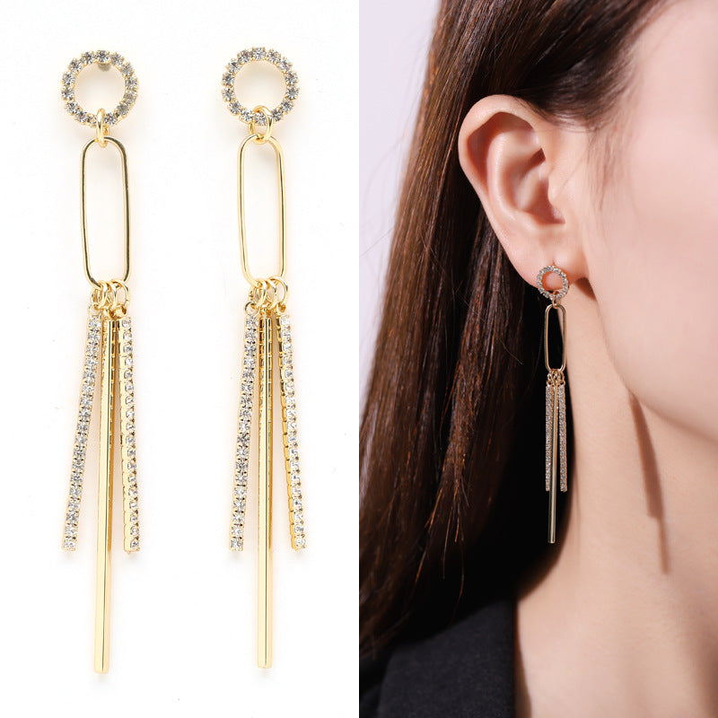 NCE00959銀針銅鑲鋯幾何型耳環女日韓時尚簡約氣質個性流蘇耳飾inskj202107
