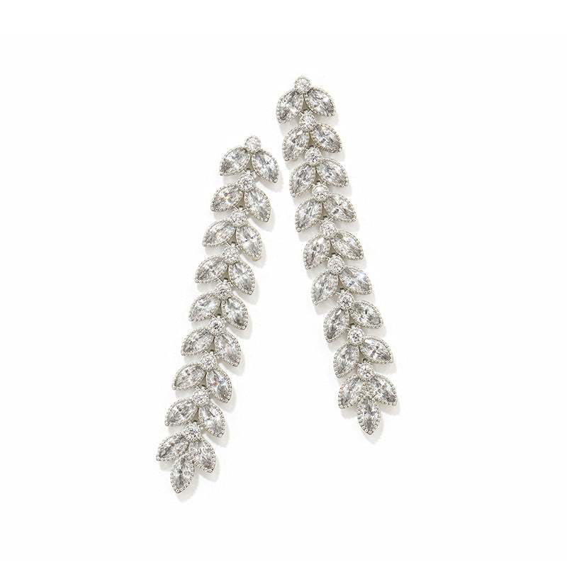NCE01070歐美誇張麥穗滿鋯耳環女時尚簡約日常百搭葉子狀925銀針耳飾kj202103