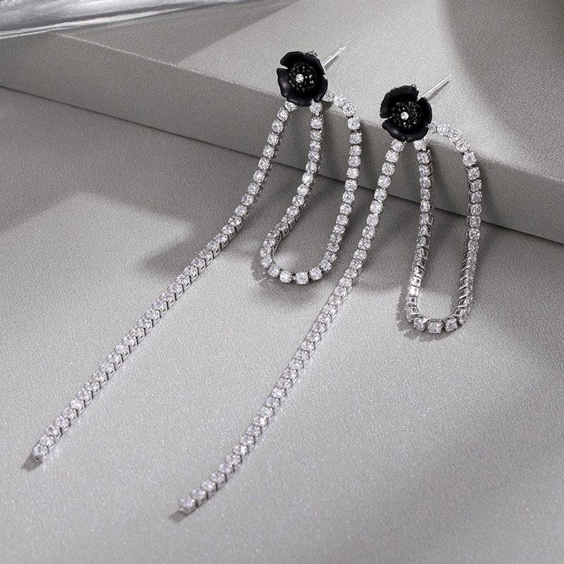 NCE01604925銀針長款流蘇花朵耳環女日韓高端簡約小香風耳釘永恒的愛doublec