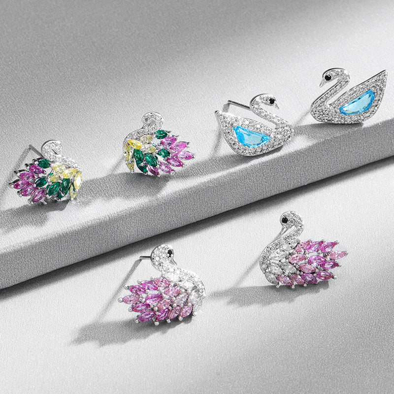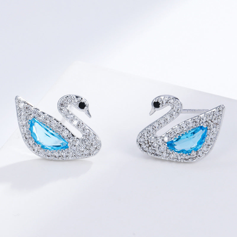 NCE01737925銀針銅鍍真金鑲鋯天鵝耳釘女日韓簡約氣質網紅熱賣款耳環kj202106