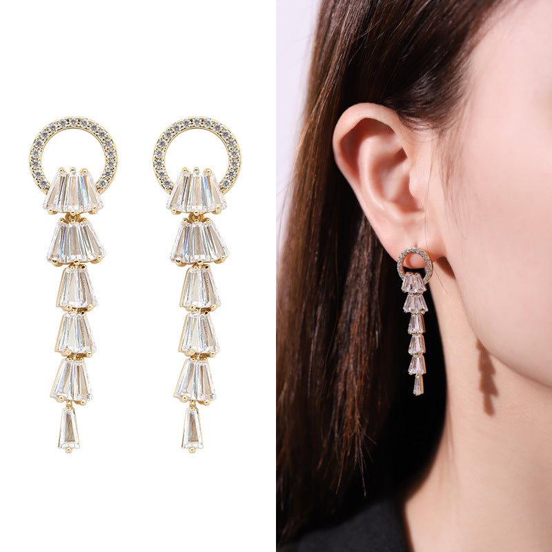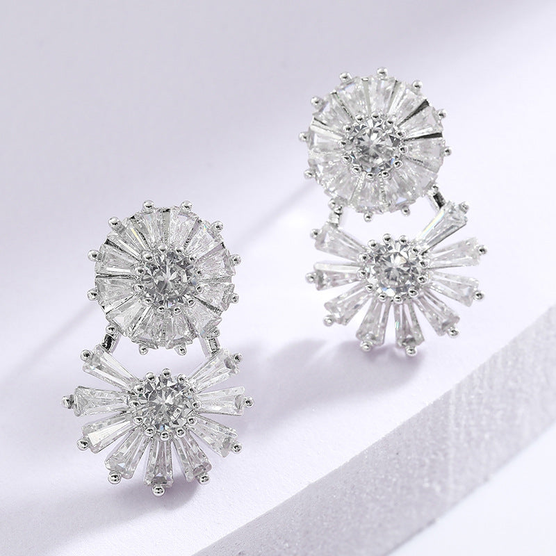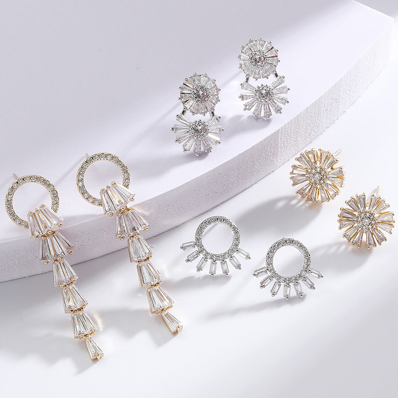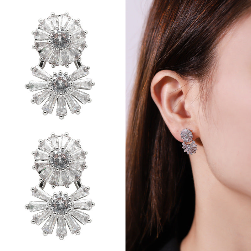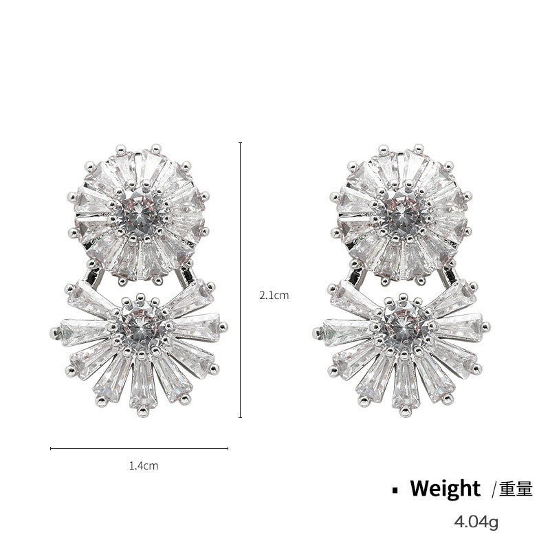 NCE02213 925銀針鑲鋯銅鍍真金花簇耳環女 韓版簡約氣質ins風誇張耳環kj202106
