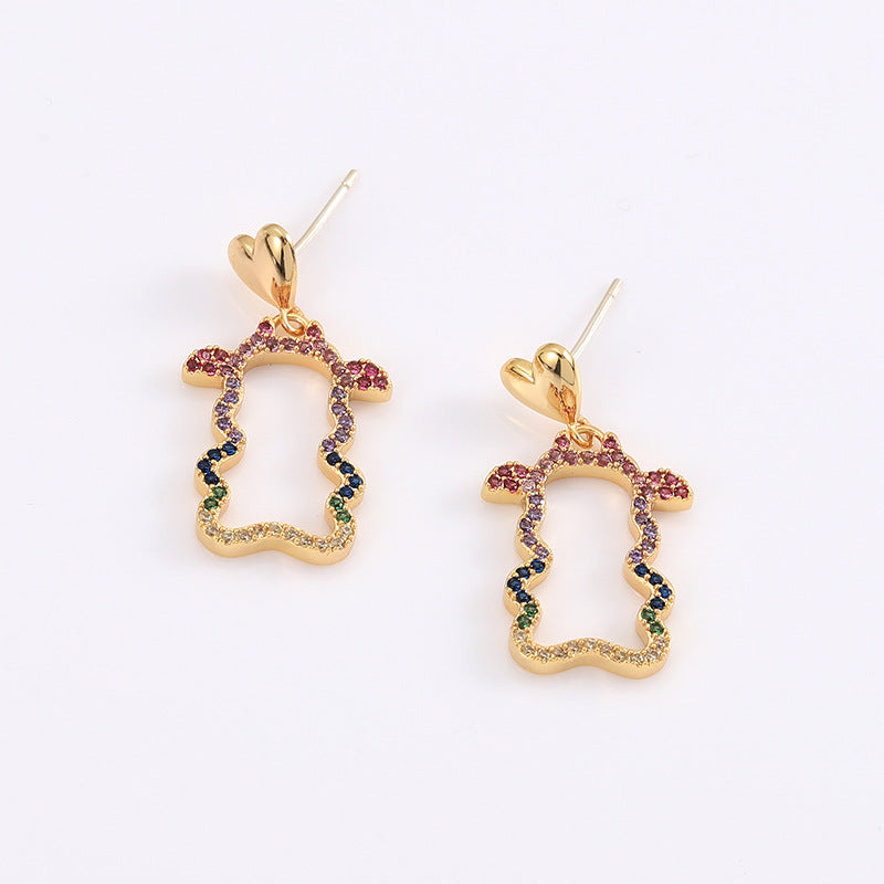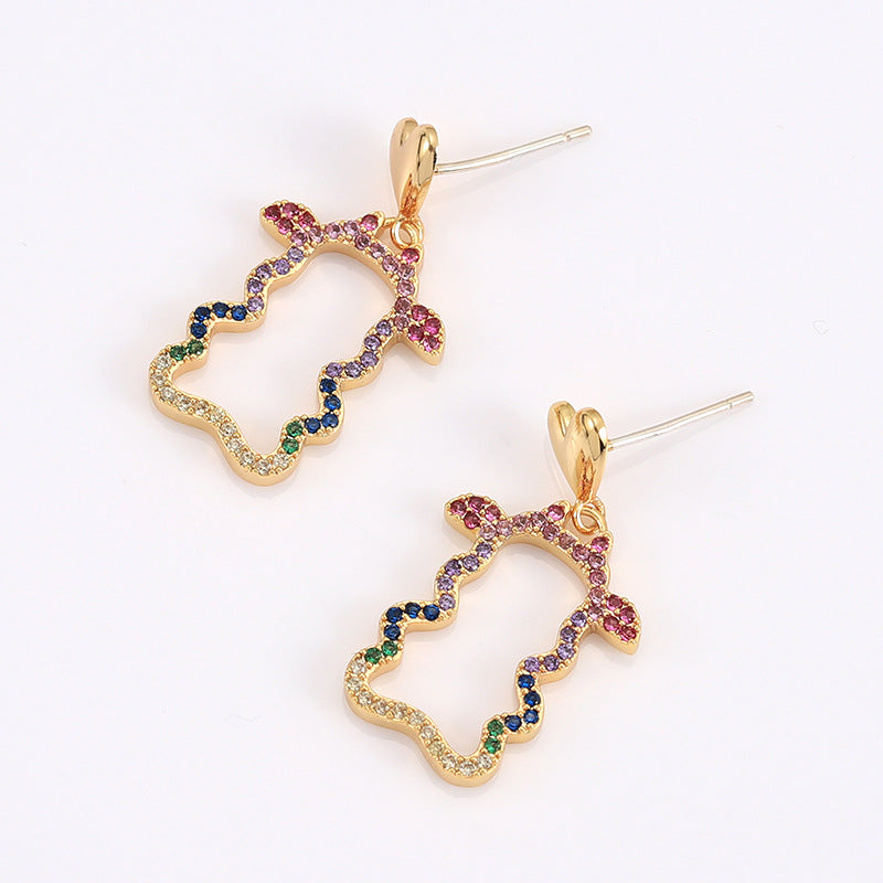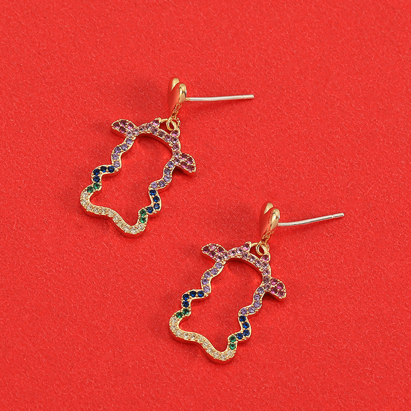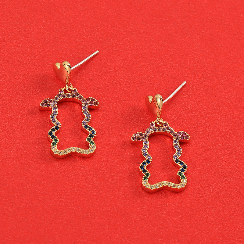 NCE02811-3s925銀針中國風新年彩虹色幾何牛耳環牛氣沖天原創設計萌寵牛耳飾kjcutecow