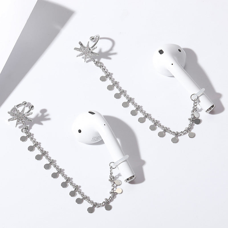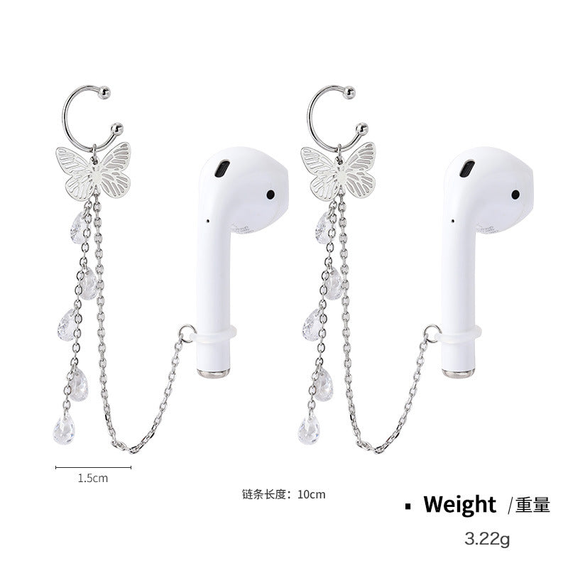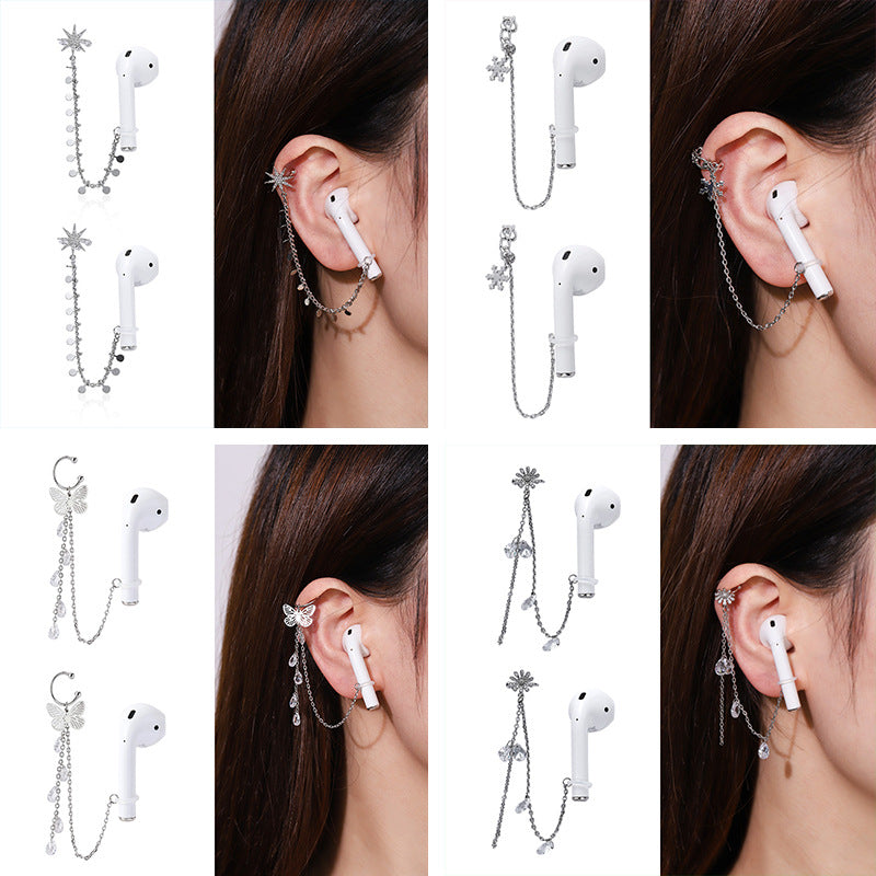 NCE03104銅鍍金鑲鋯流蘇款六芒星耳夾女 網紅爆款蝴蝶防丟耳機鏈耳環kj202106