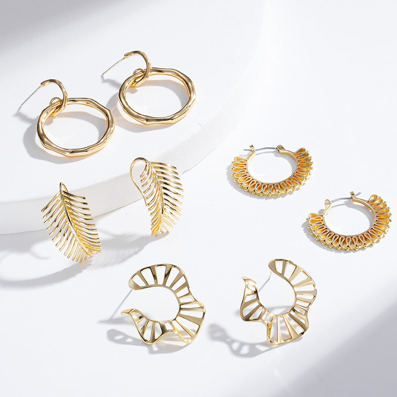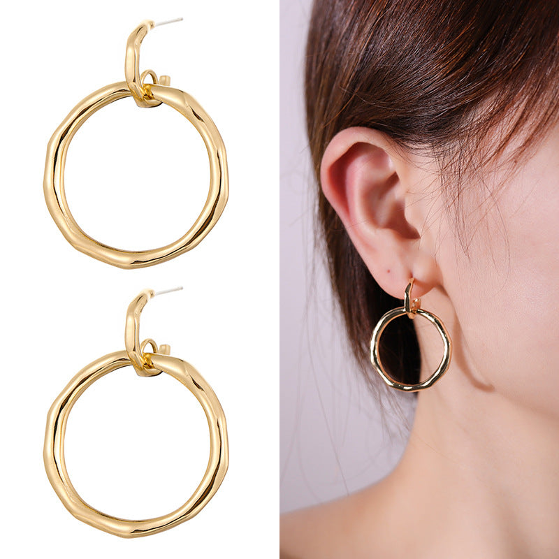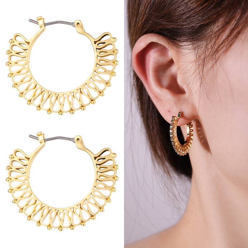 NCE04313歐美銅鍍金鏤空個性耳圈女式經典復古百搭ins風銀針耳環KJ20210812