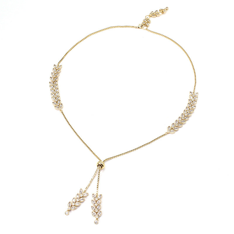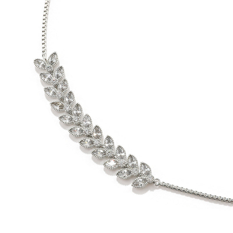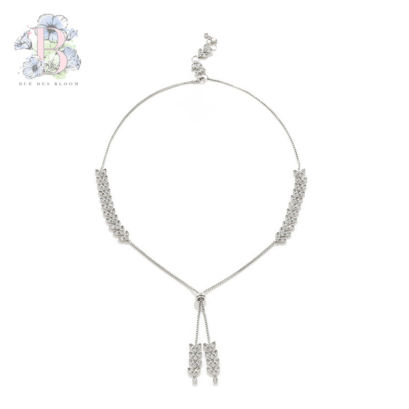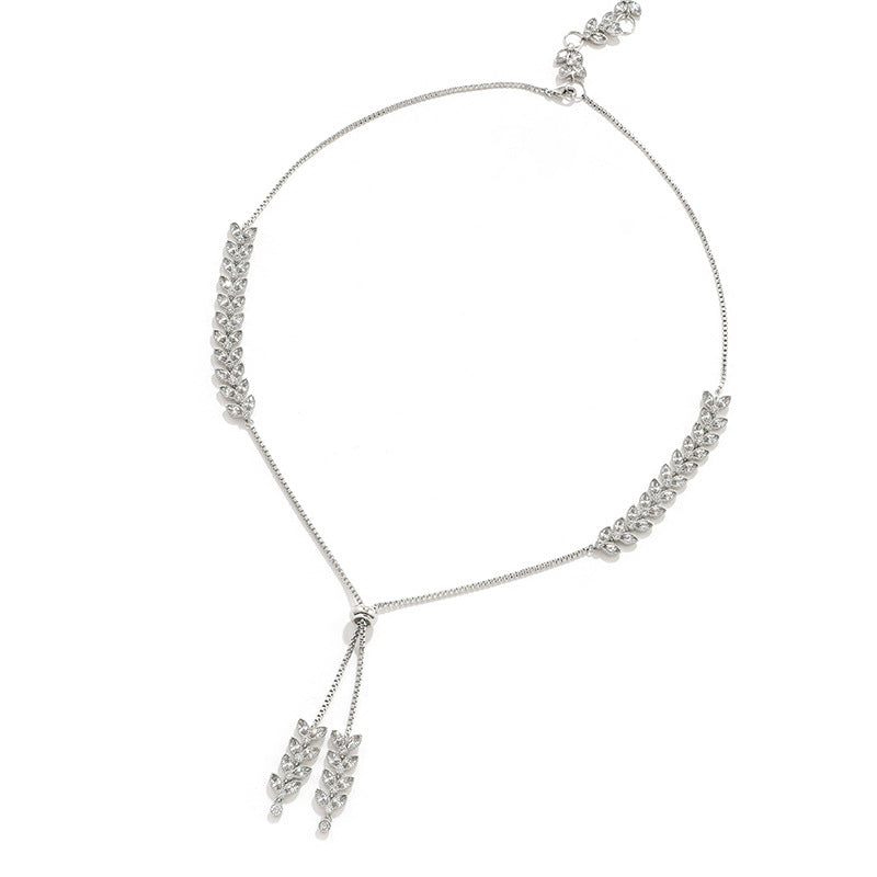 NCN00453飾品設計師原創樹葉型水滴形女式可調節伸縮扣銀色鋯石項鏈女kj202103