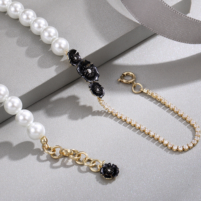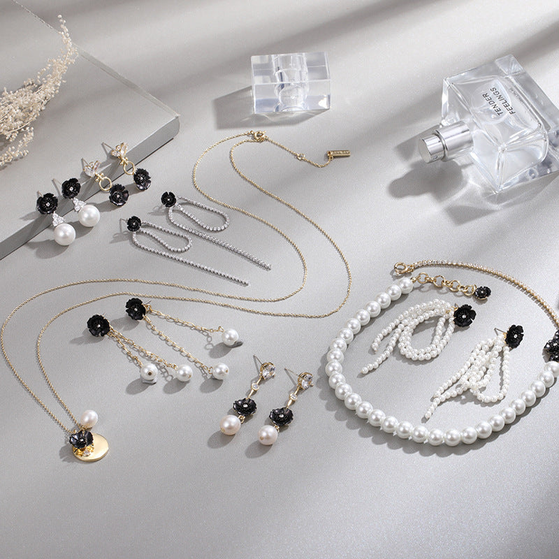 NCN00848珍珠花朵項鏈女 日韓高端復古頸鏈永恒的愛小香風套裝項飾女doublec