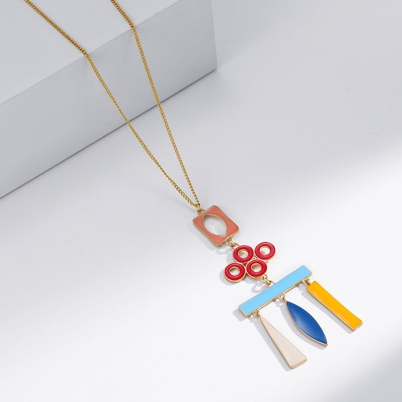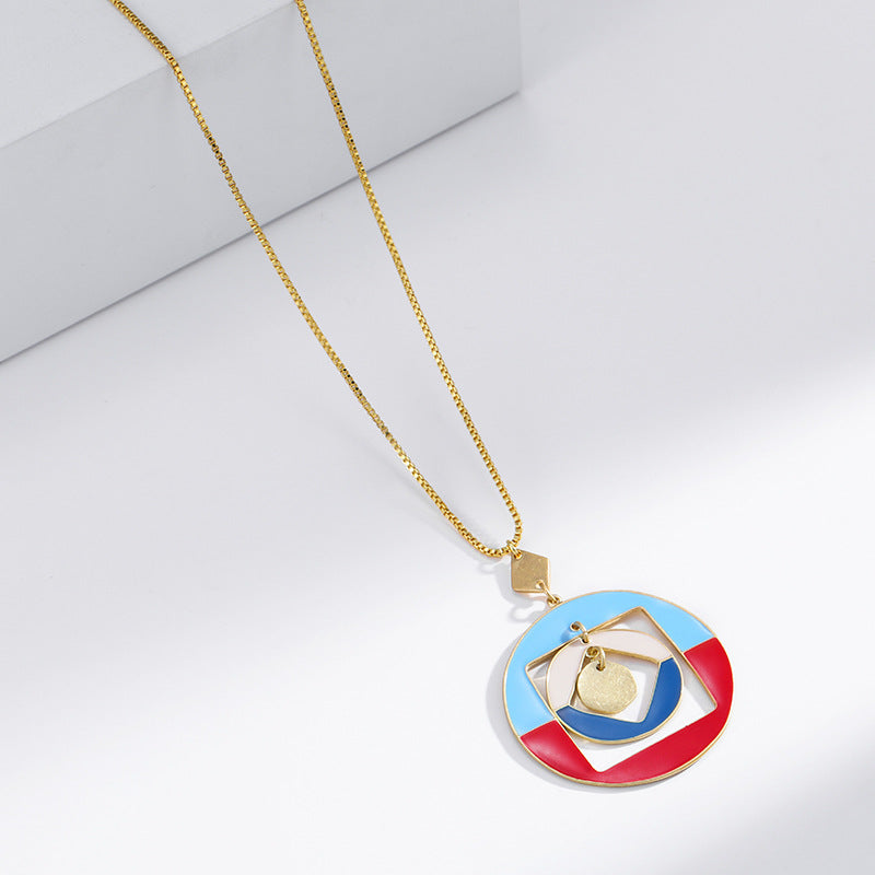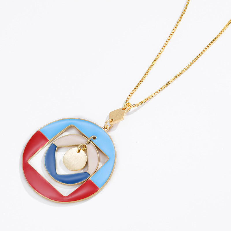 NCN01208原創設計景泰藍琺瑯滴油混色吊墜女歐美跨境幾何復古個性項鏈kj202107