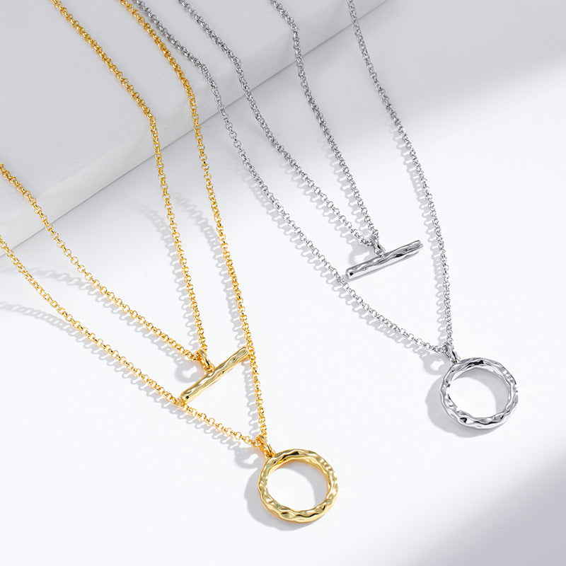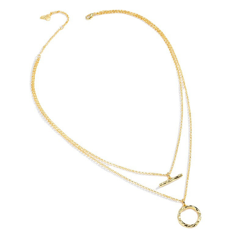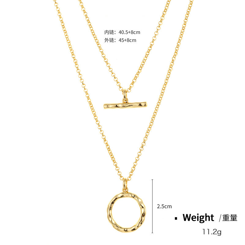 NCN01219原創設計金屬鍍金雙排疊戴項鏈女式日韓百搭OT元素吊墜鎖骨鏈kj202107