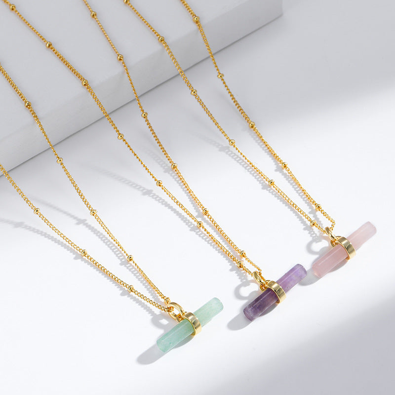 NCN01220天然半寶石金屬鍍金棍棍吊墜女式原創設計夏季百搭鎖骨鏈項鏈kj202107