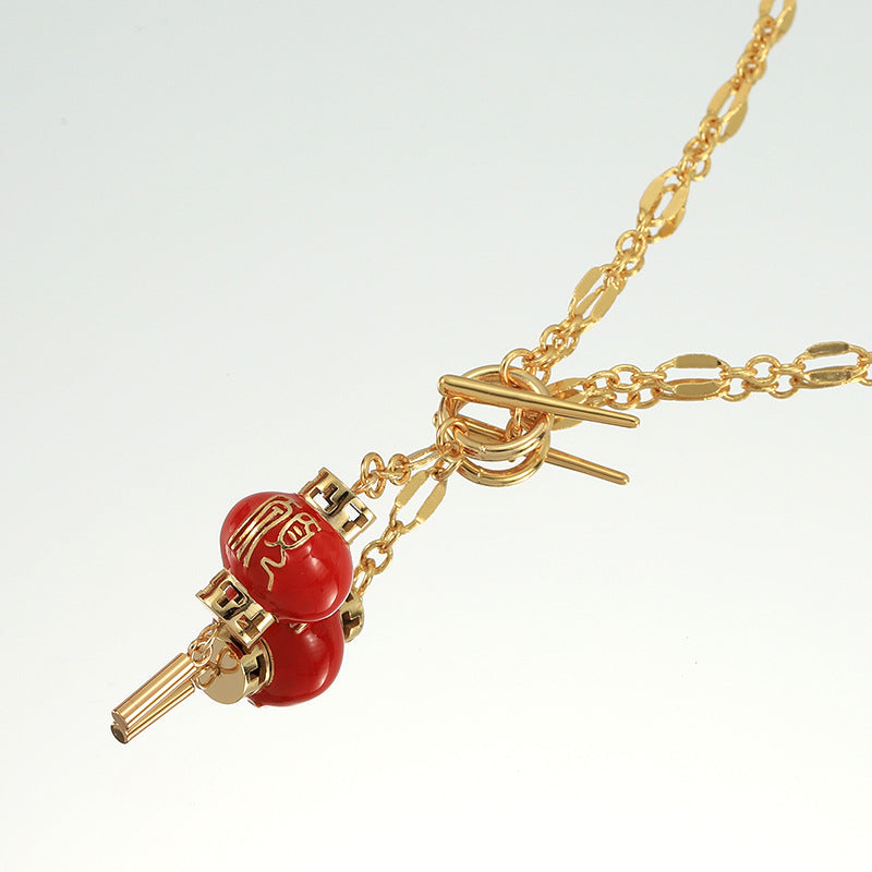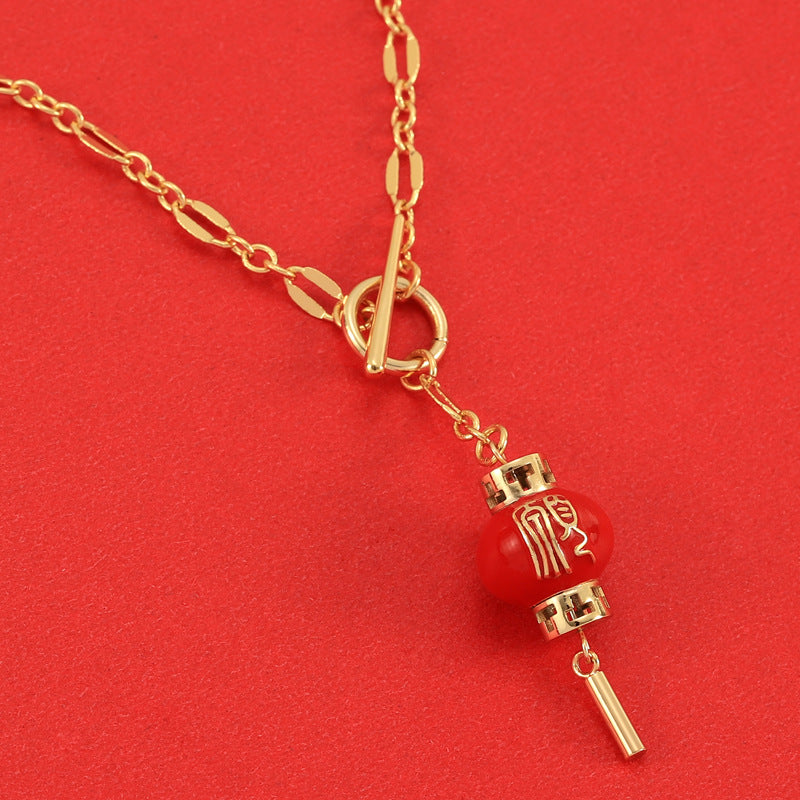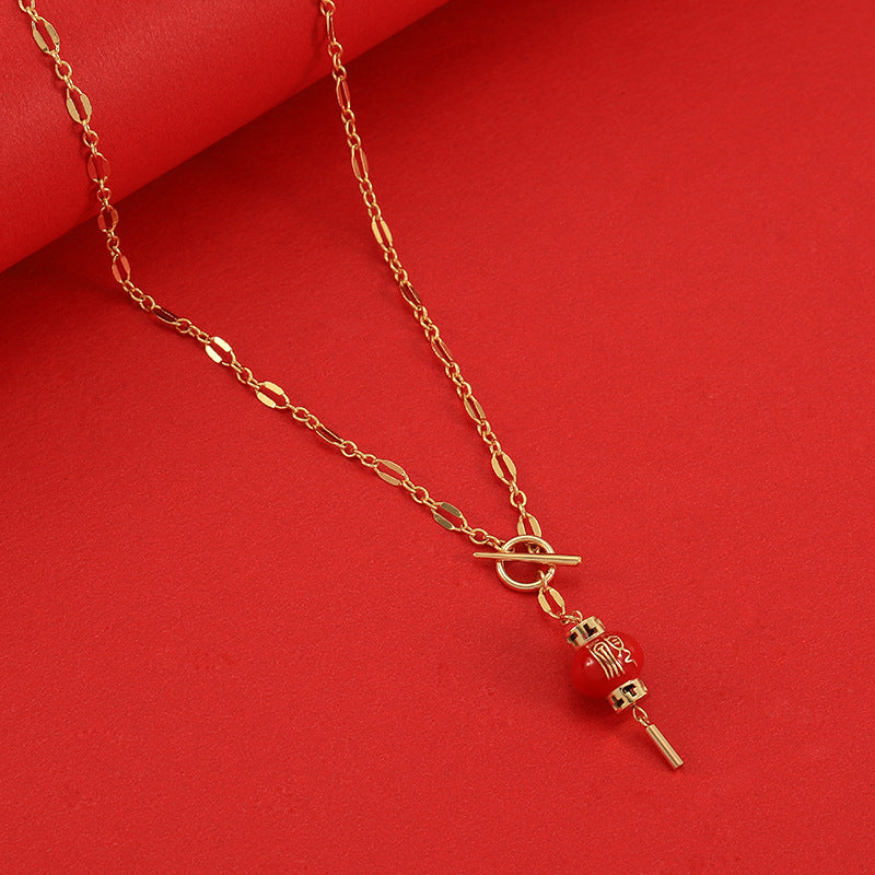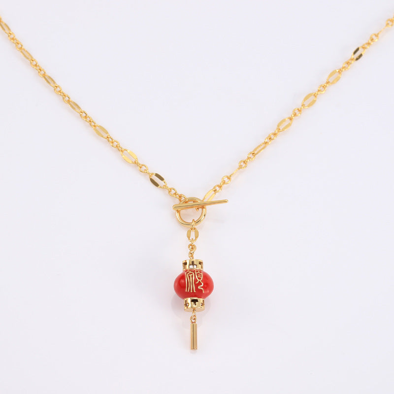 NCN01394中國風新年紅燈籠喜慶吊墜國潮時尚百搭氣質女OT扣原創設計項鏈kjcutecow