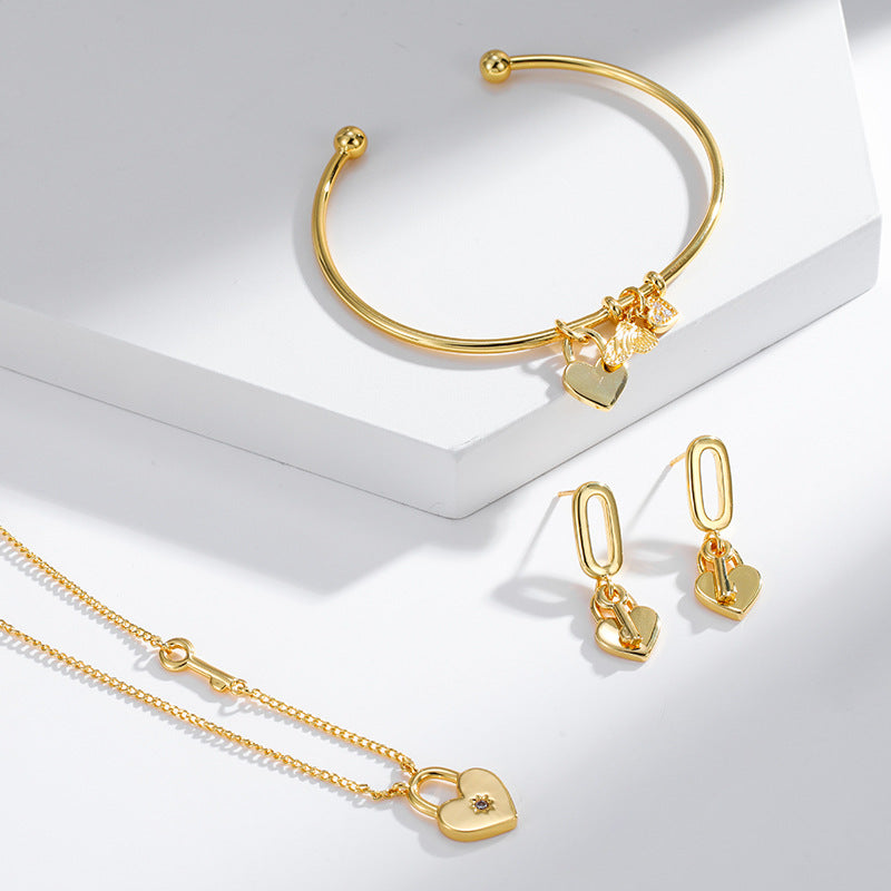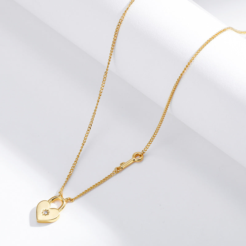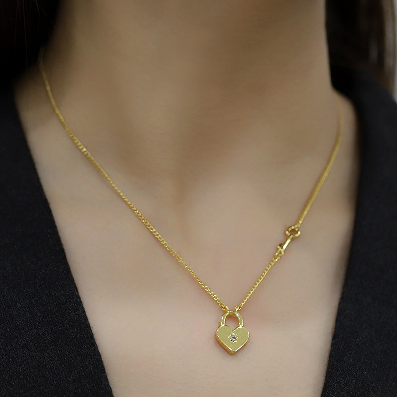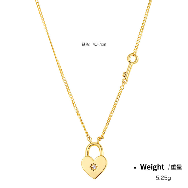 NCN01651銅鍍真金鑲鋯愛心鎖系列吊墜女式 歐美原創設計簡約氣質項鏈kj202107