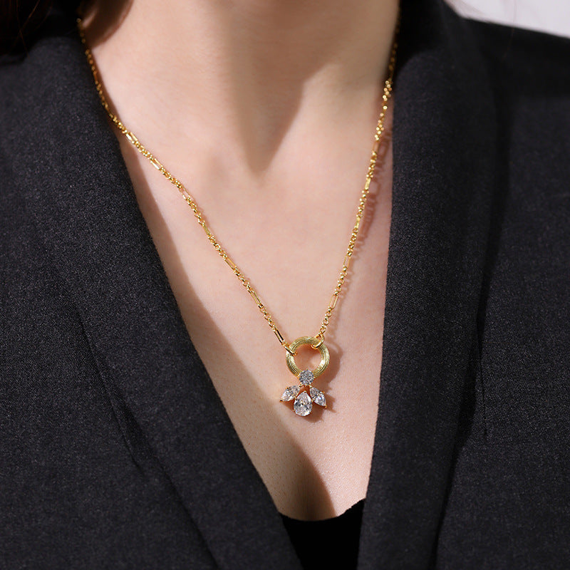 NCN01808秋冬款幾何型女式滿鉆水鉆鑲嵌金色水波鏈獨立包裝項鏈女式kj202106