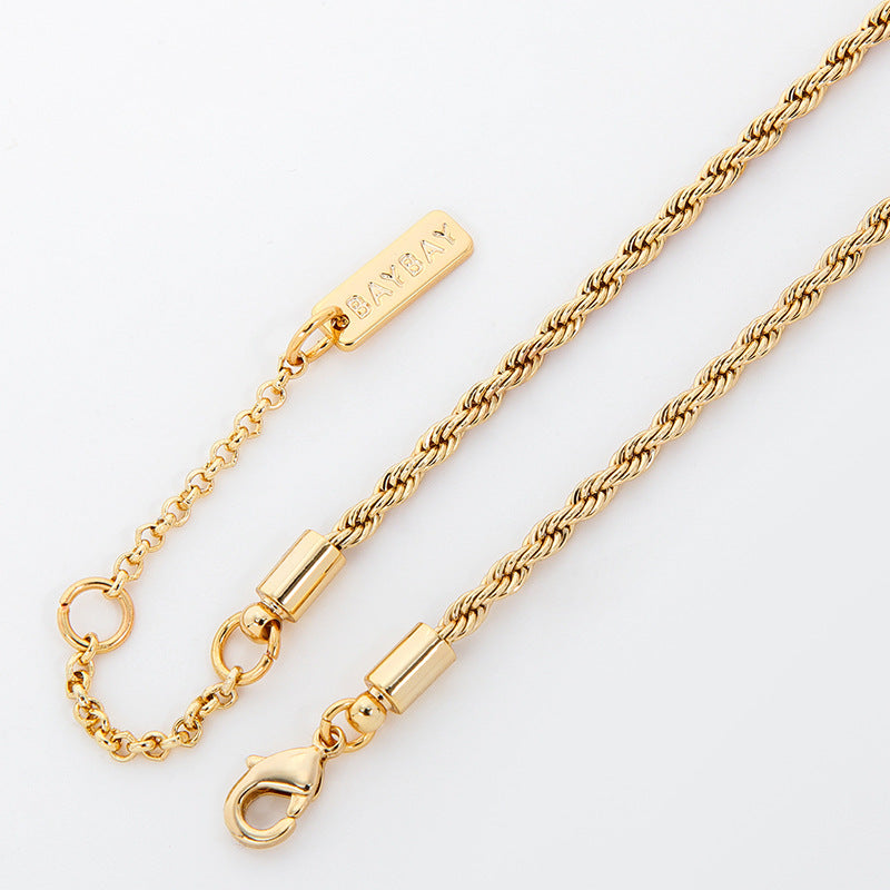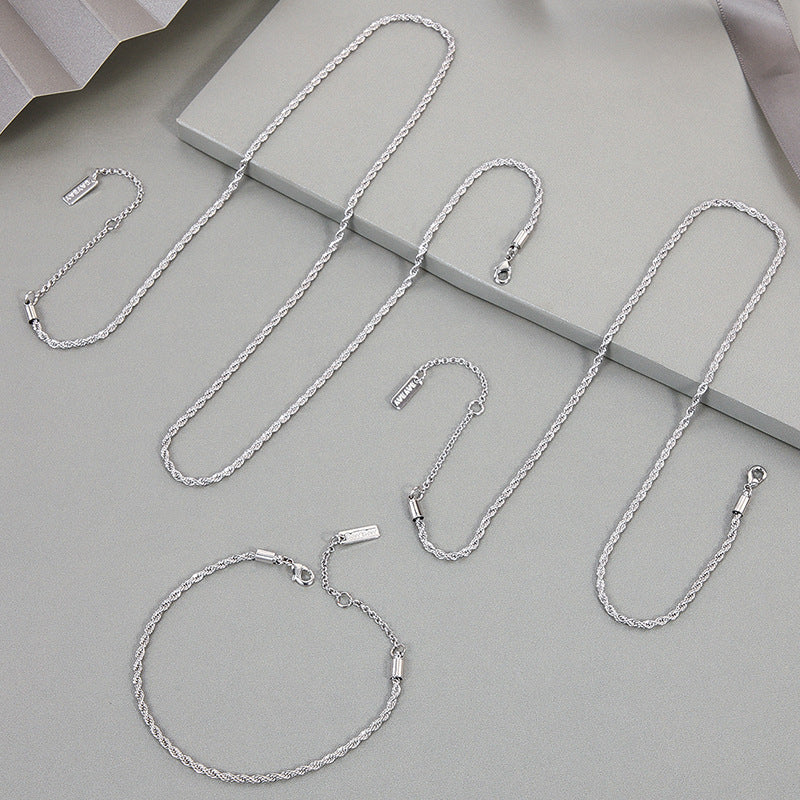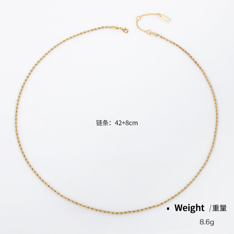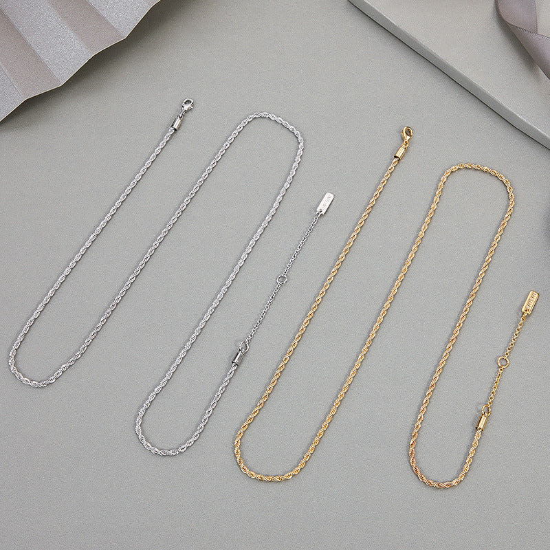 NCN02018銅鍍金銀麻繩項鏈男女 時尚夏季簡約麻花項鏈潮流復古素頸鏈kj202104