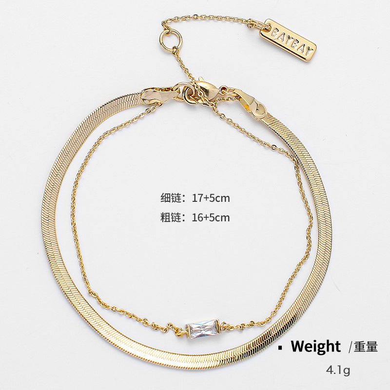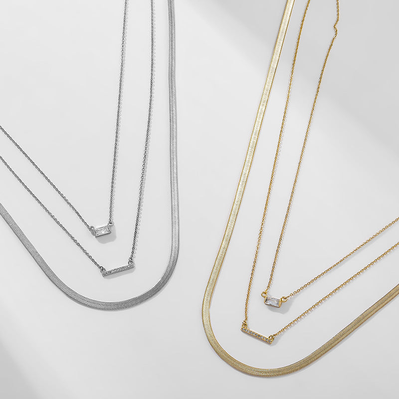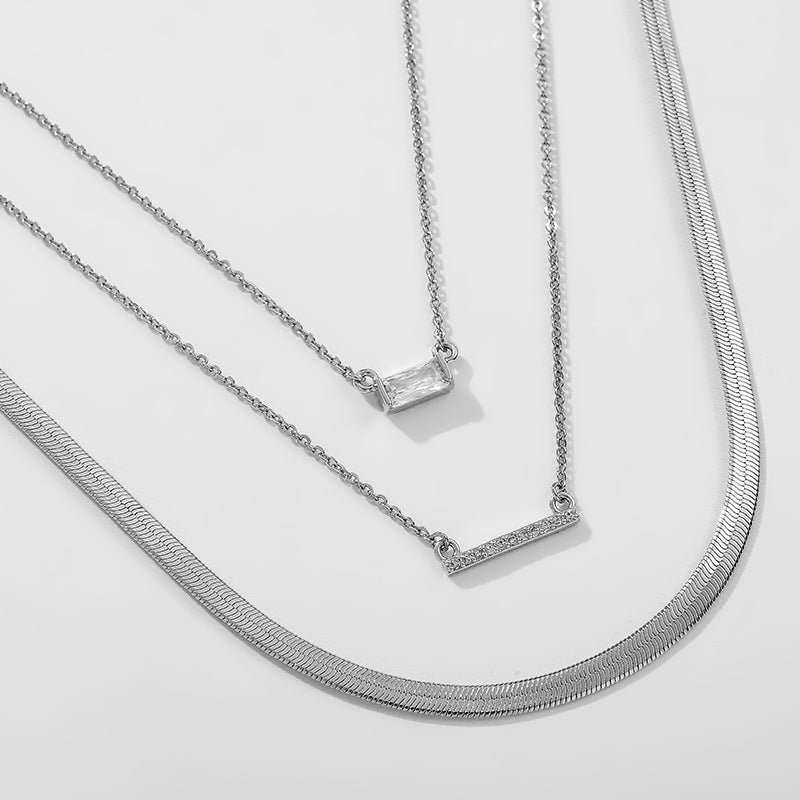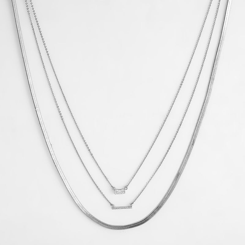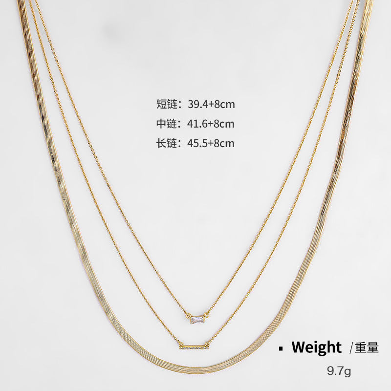 NCN02045歐美跨境三排疊戴金屬鍍金項鏈女式時尚簡約氣質鎖骨鏈ins風kj202105