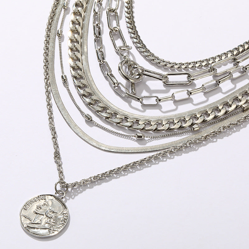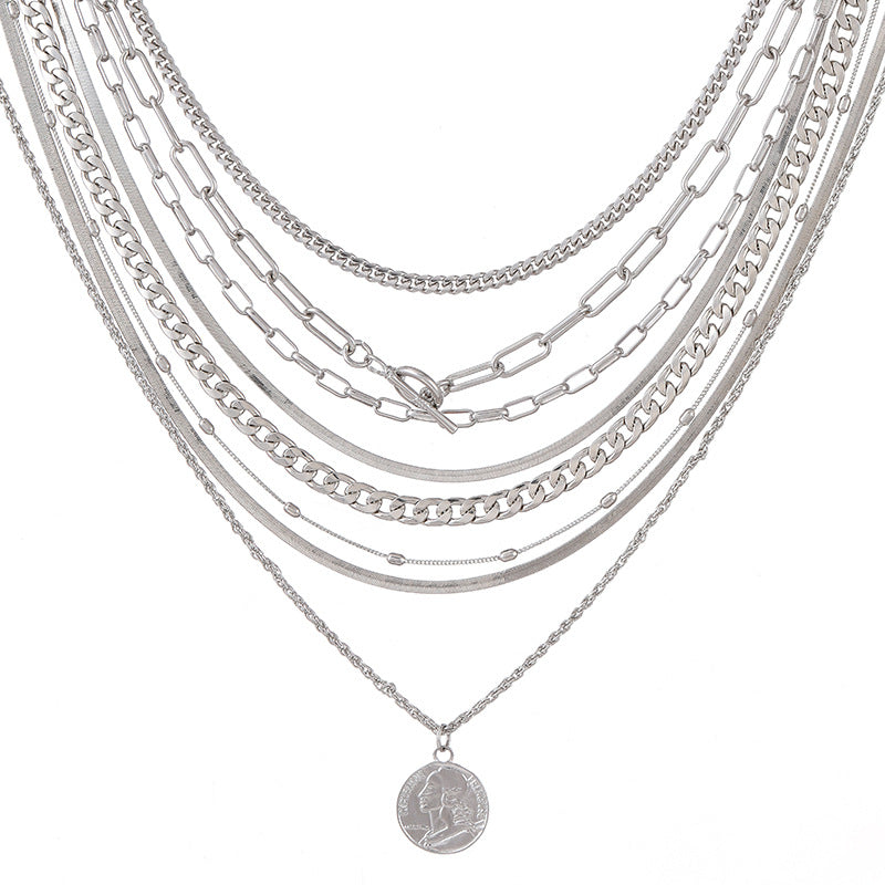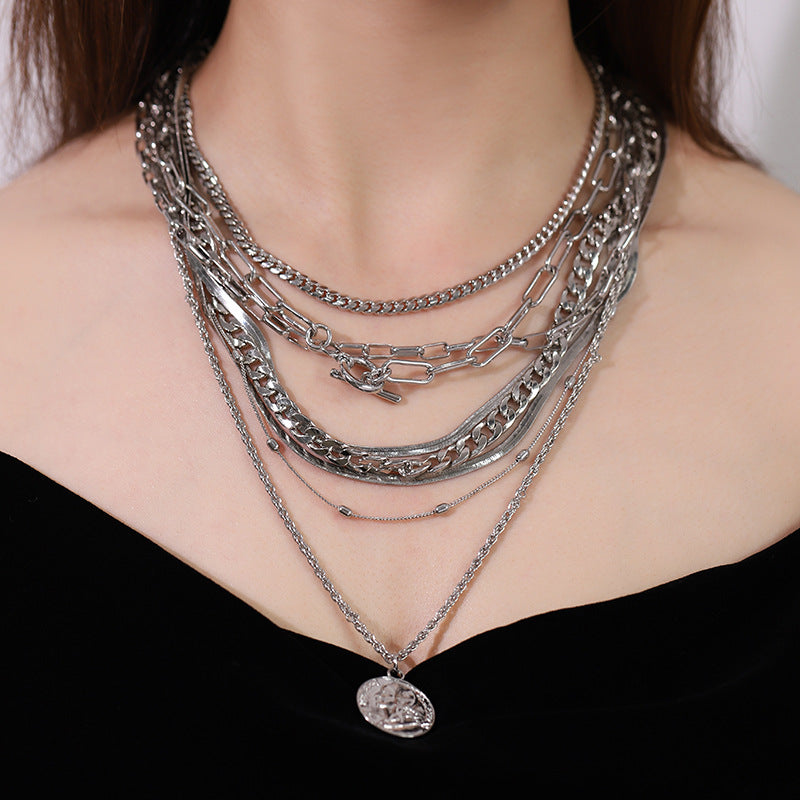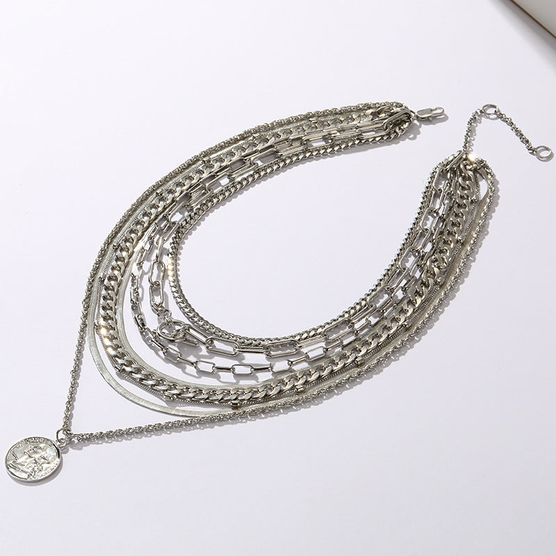 NCN02085金屬鍍金多層疊戴塔羅牌項鏈歐美跨境專供ins風網紅爆款項飾kj202106